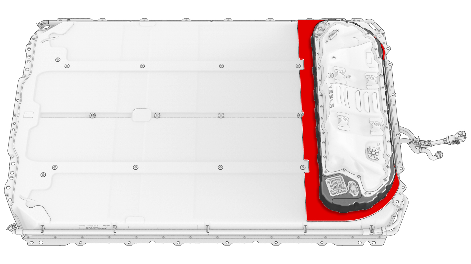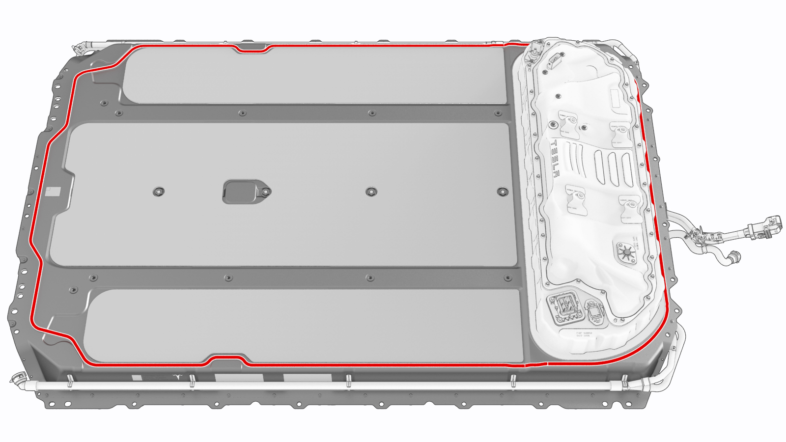 ![]() | 1 | Peel the backing off a new HV battery cover gasket, position the long straight edge to the front of the HV battery, and then install the gasket onto the HV battery surface around the penthouse. | |