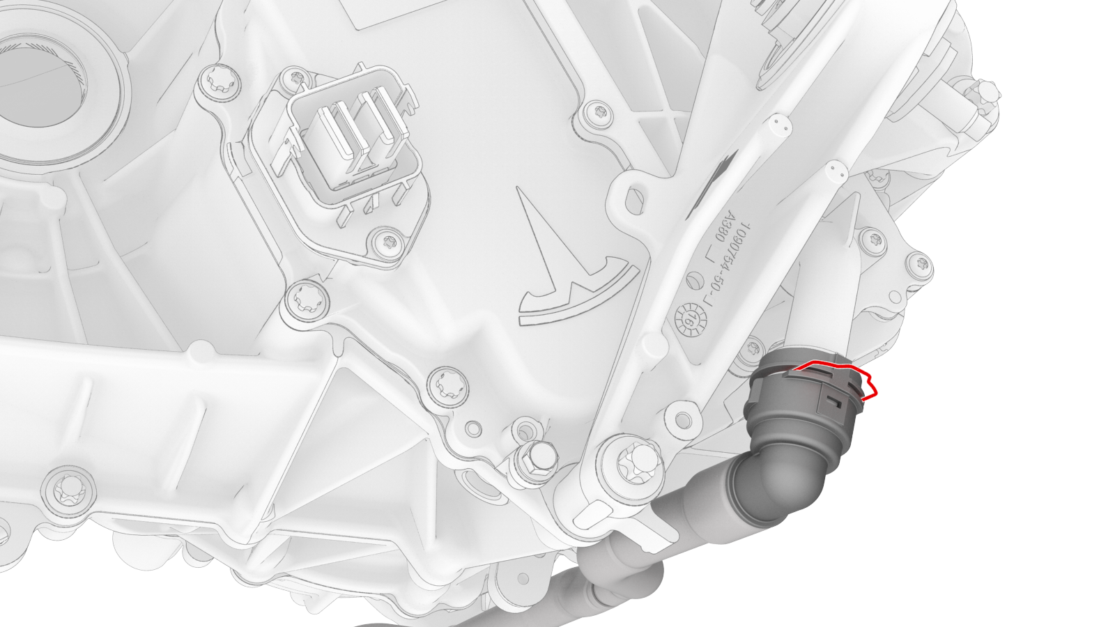 ![]() | 2 | Install the clip that attaches the front drive unit inverter inlet hose to the exterior of the front drive unit gearbox. | |
