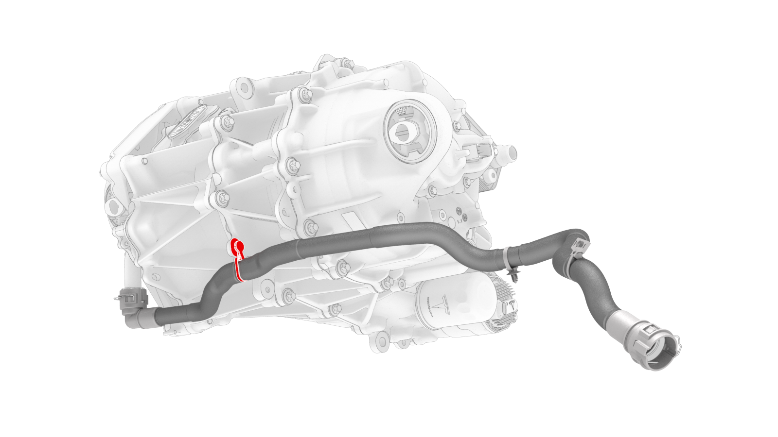 ![]() | 16 | Release the clip that attaches the front drive unit inverter inlet hose to the exterior of the front drive unit gearbox. | |