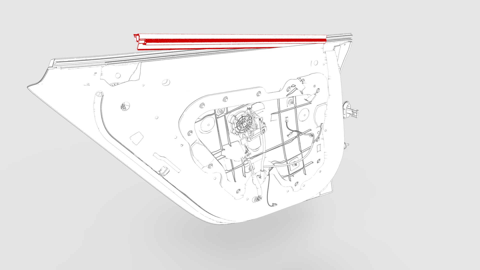 - Press the rear door inner belt seal downwards into the rear door.