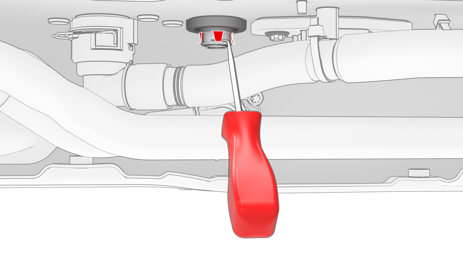 ![]() | 12 | Pull the retainer ring of the LH flood port down and off. Tip: Twist the retainer ring as it is pulled down. | |