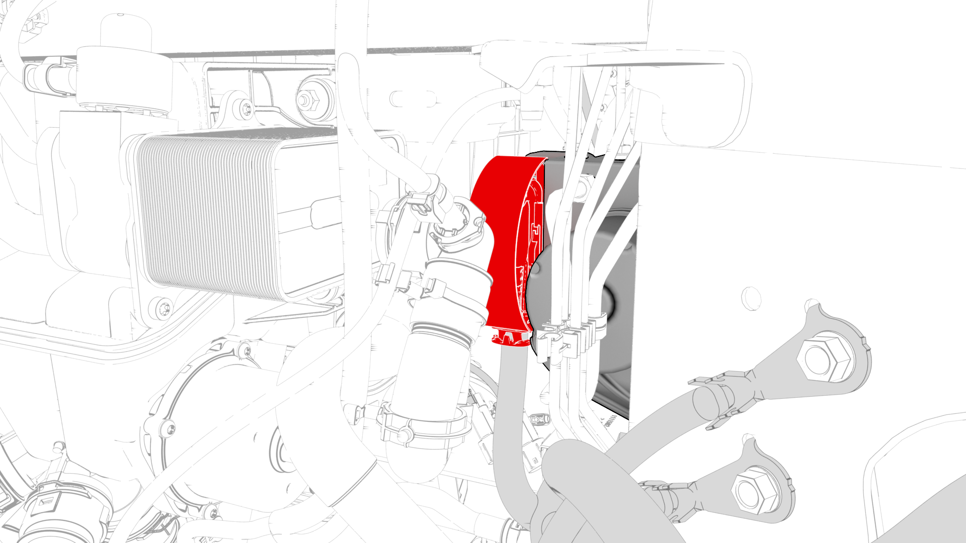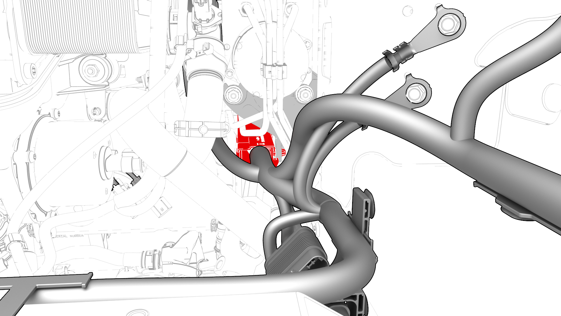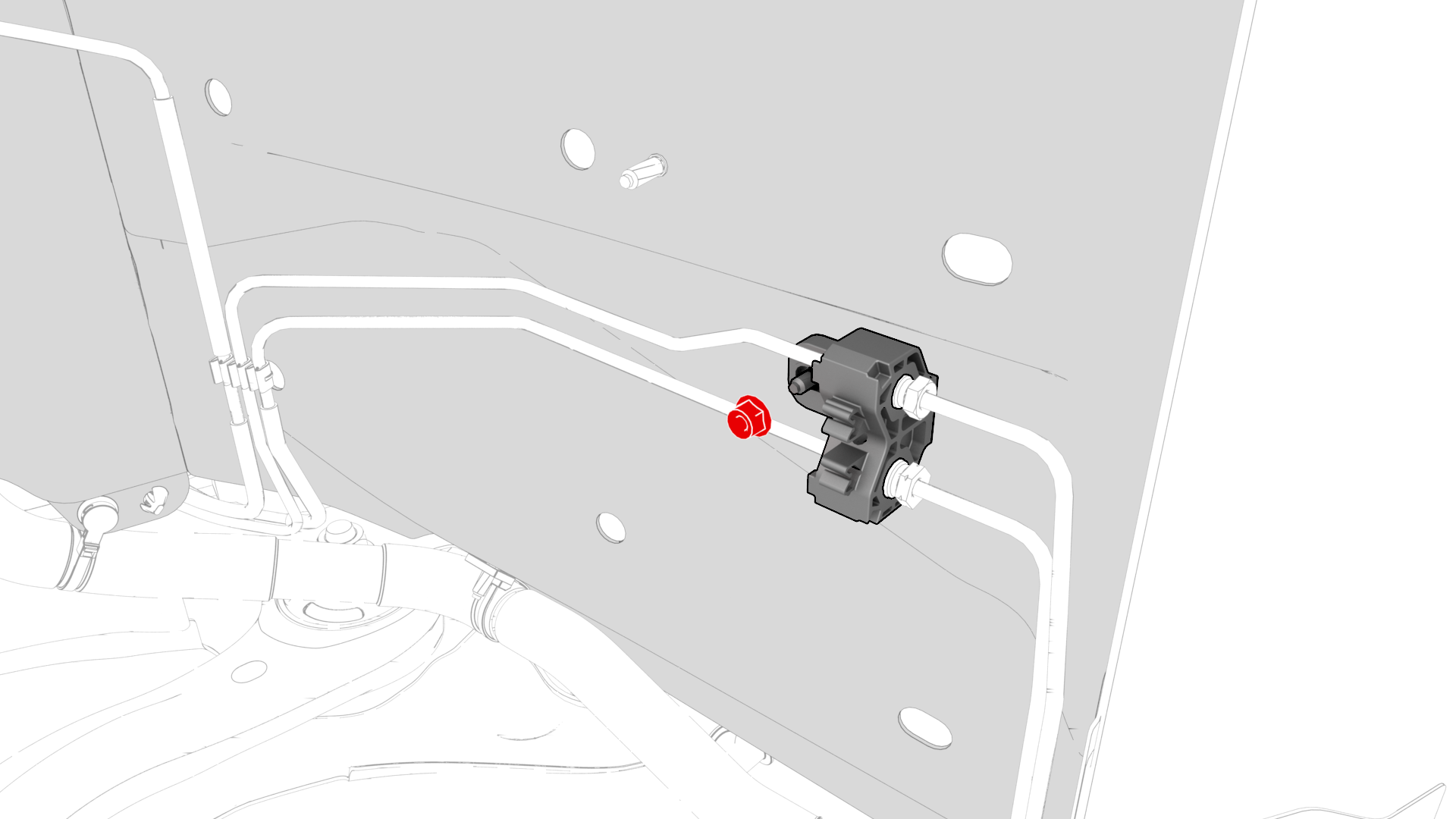 | 7 | Install the front junction block and lines into the vehicle. Note: Move the lines in through the LH wheel well, then to the RH side, and then backward.
