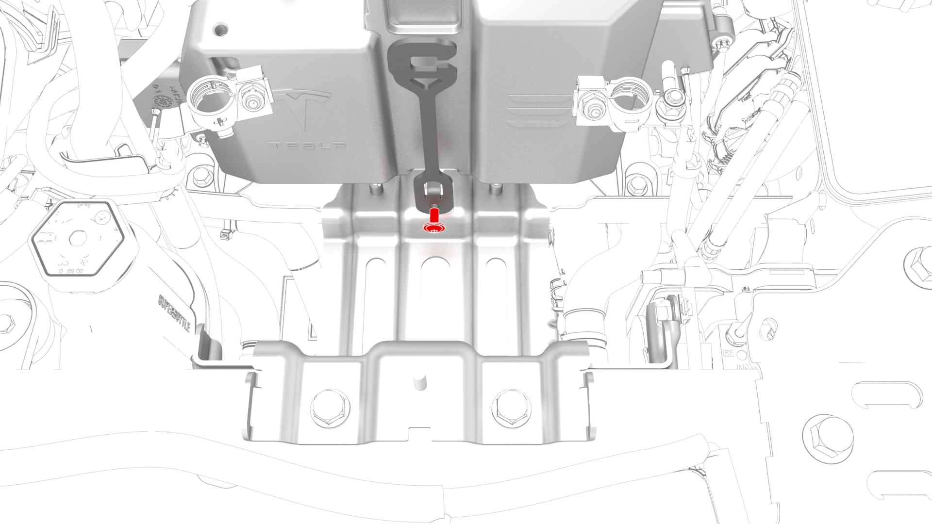 ![]() | 12 | Remove the upper bolts (x2) that attach the battery bracket to the vehicle. | |