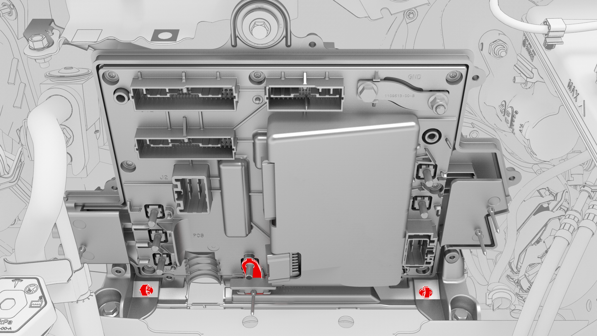 ![]() | 26 | Remove the bolts (x3) that attach the front body controller module to the body. | |