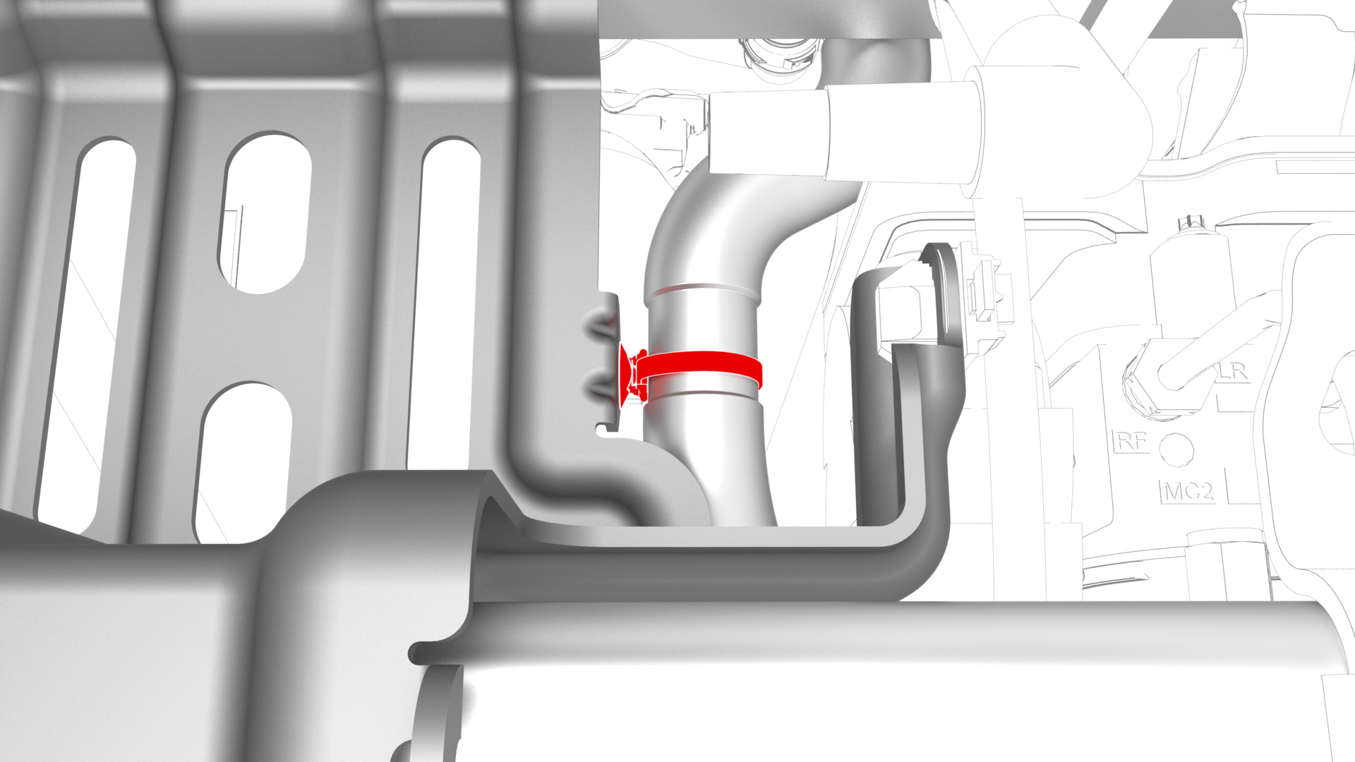 ![]() | 20 | Fasten the clip that attaches the coolant hose to the 12V battery bracket. | |