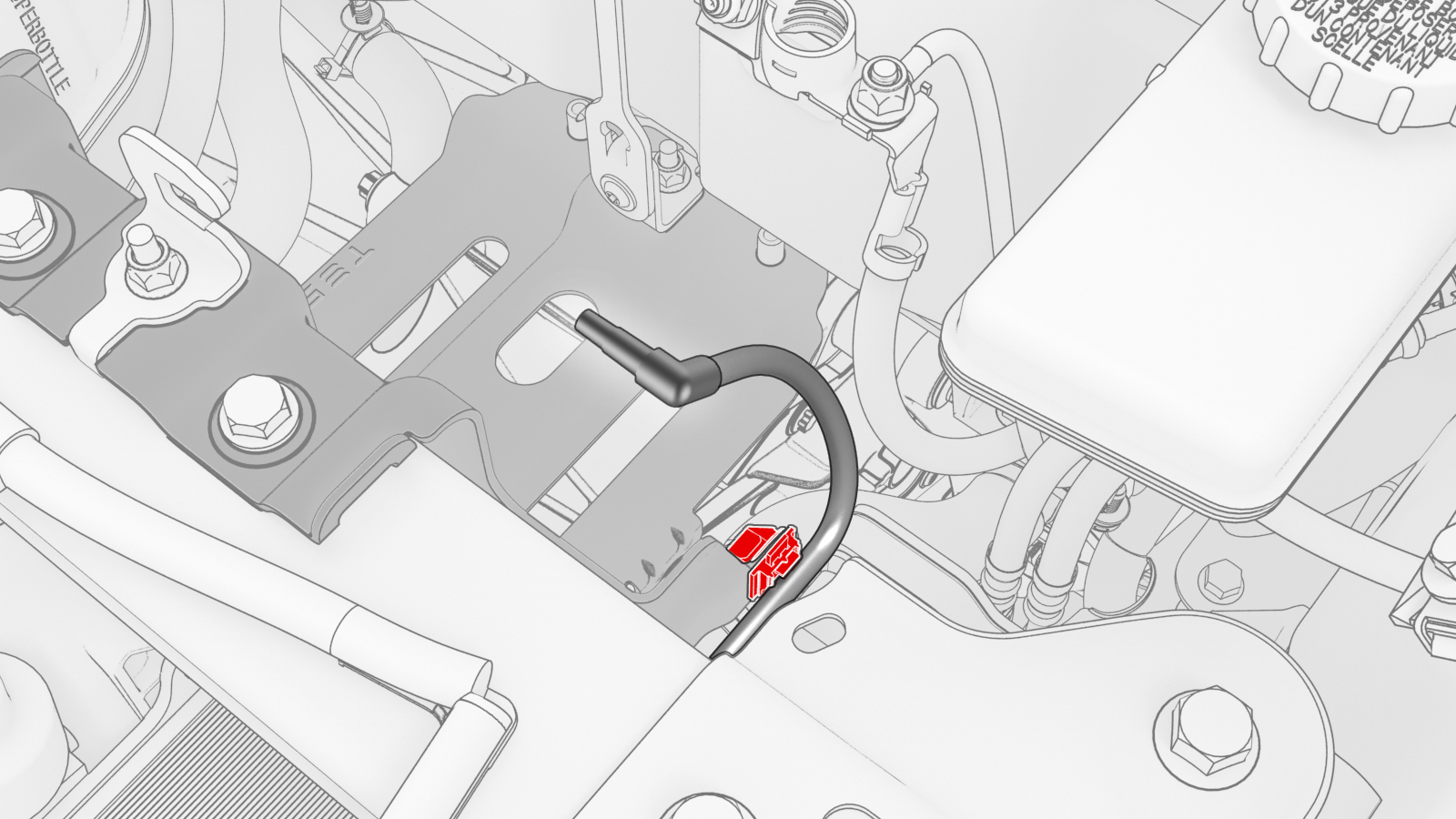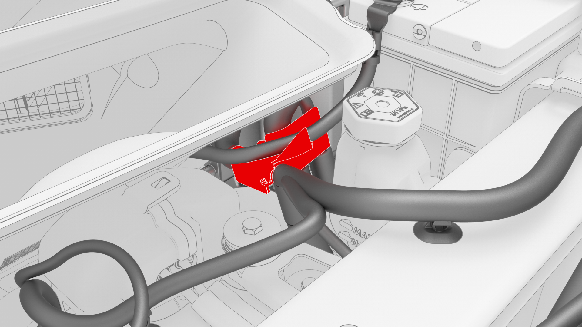 ![]() | 19 | Fasten the clip that attaches the 12V battery vent hose to the 12V battery bracket. | |