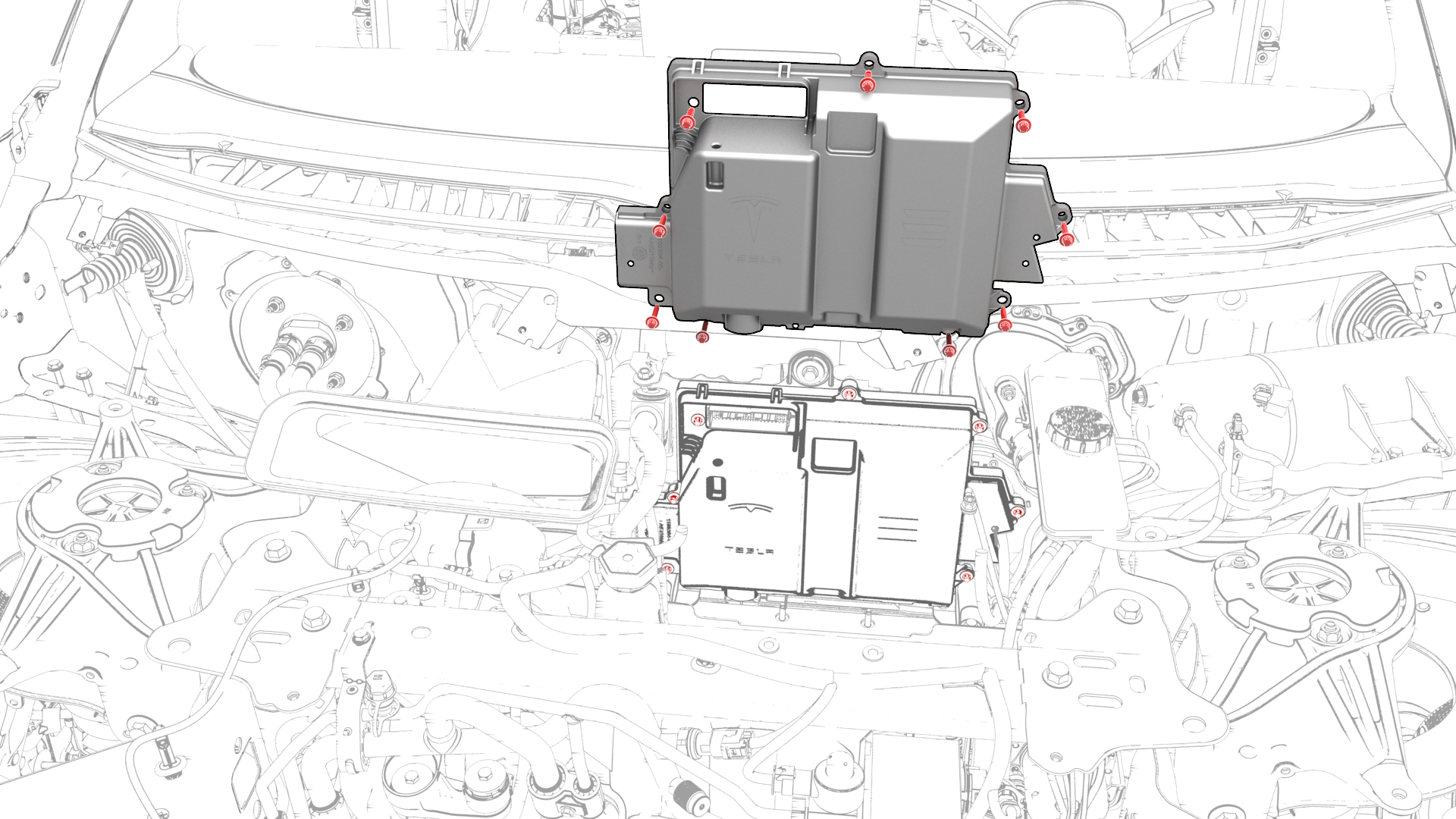 | 9 | Remove the 12V auxiliary battery. See Battery - 12V (Remove and Replace). | ||