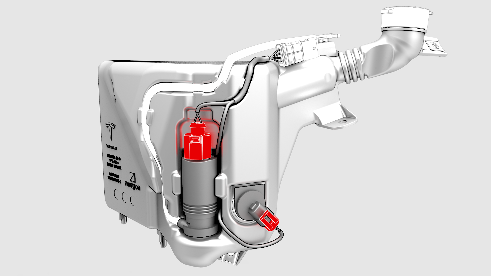 ![]() | 16 | Disconnect the electrical wiring harness connectors from the washer pump and level sensor. | |