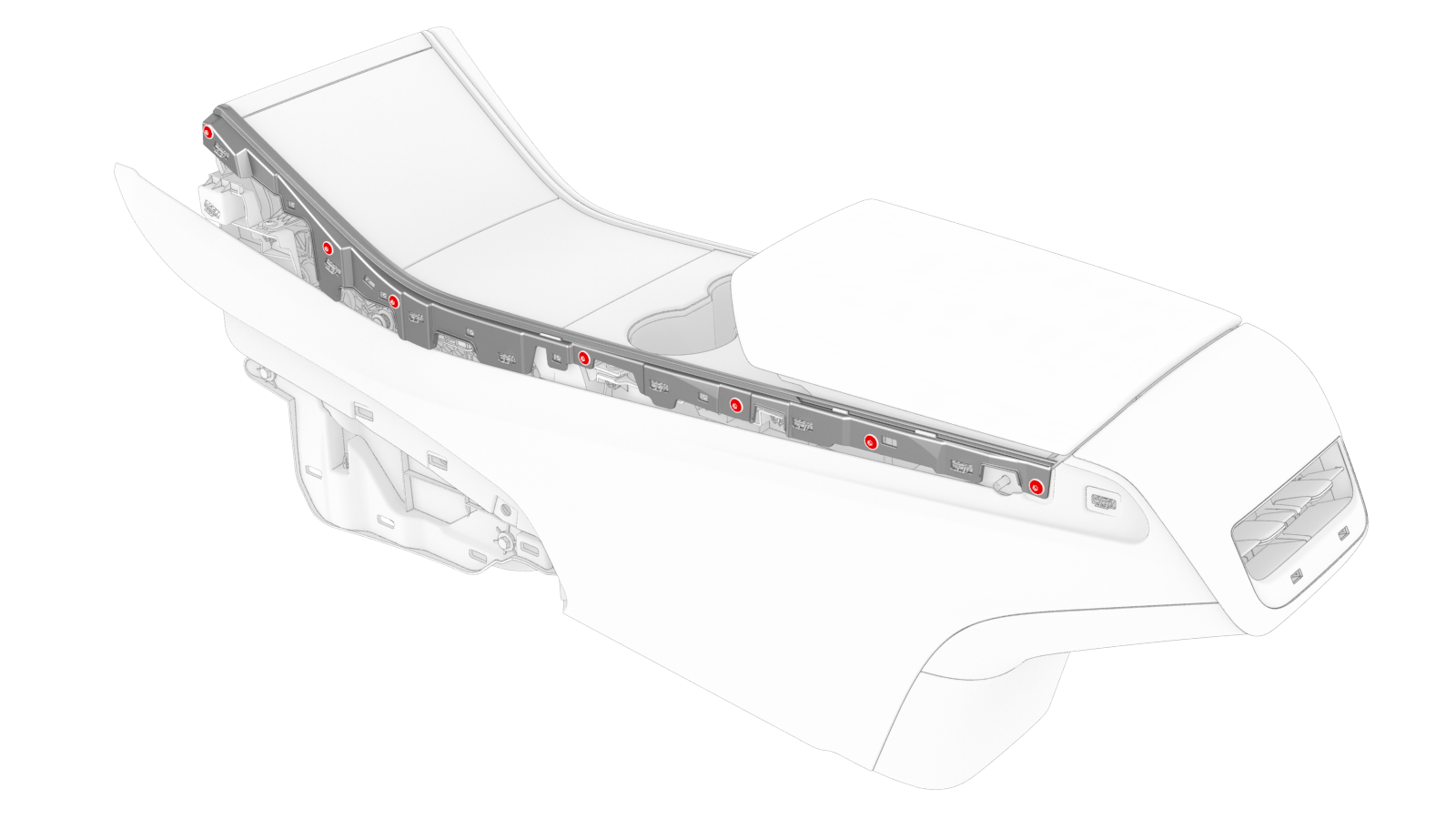 ![]() | 3 | Remove the screws and release the tabs that attach LH and RH bright strips to the center console, and then remove the strips from the console.![]() Torque 1.6 Nm | |