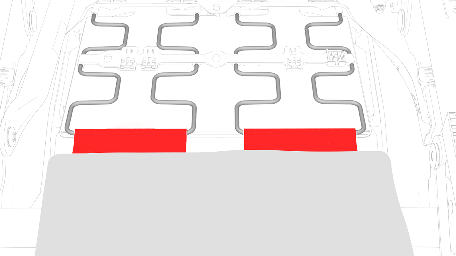![]() | 1 | Install the seat cushion foam to the seat cushion frame, and then fasten the clips (x3) that attach the foam to the frame at the outboard and inboard sides, and at the front. Note: Make sure that the seat heater connector and seat occupied sensor assembly passes through the seat suspension or frame.