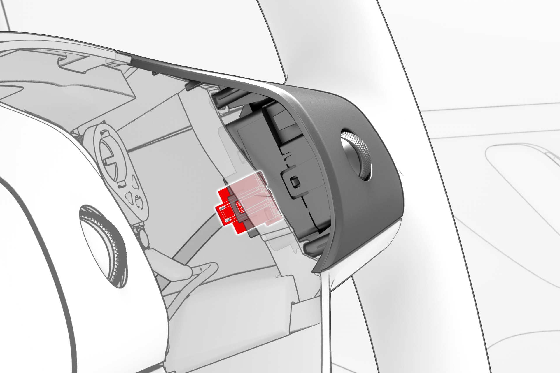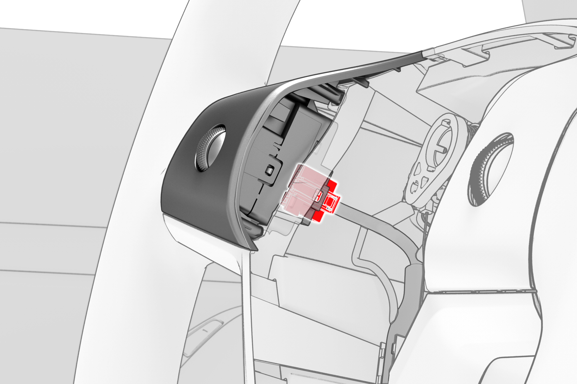 ![]() | 3 | Disconnect the electrical harness from the LH steering wheel switch connector. | |