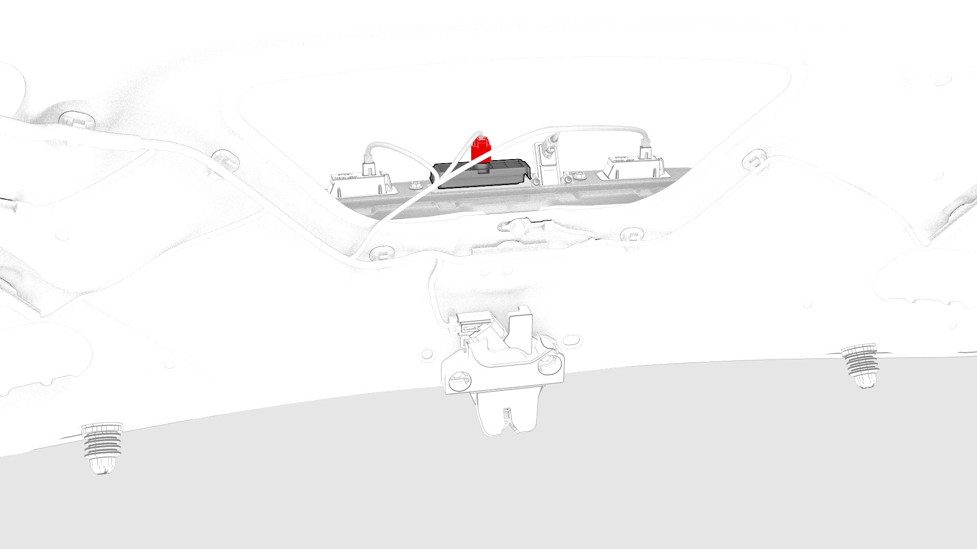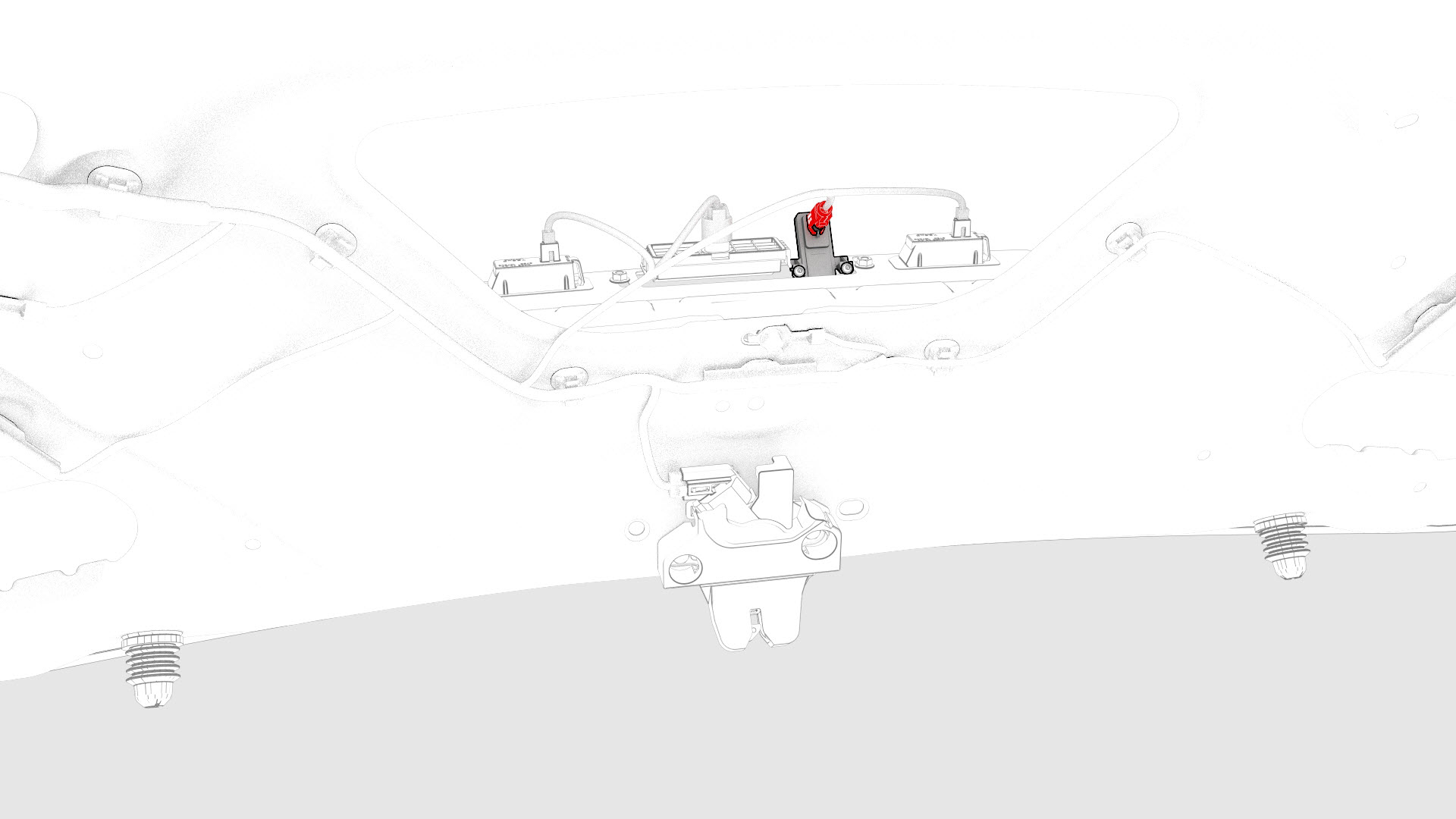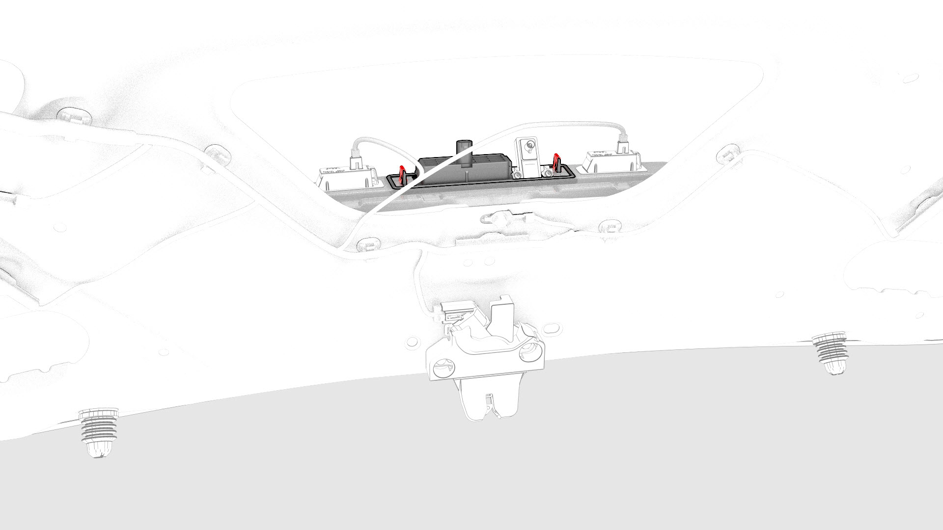 ![]() | 3 | Remove the bolts that attach the rear facing camera to the trunk exterior release switch, and remove the camera from the switch. | |