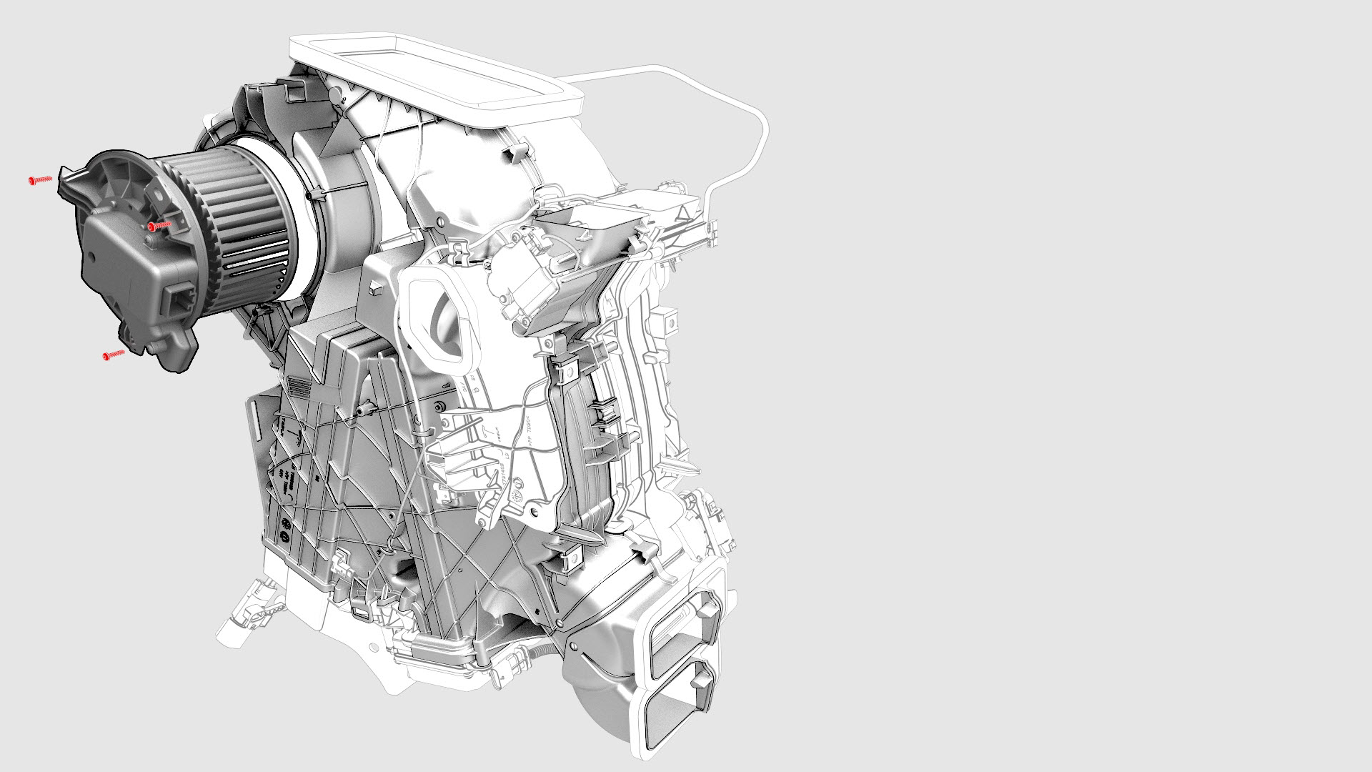 | 1 | Remove the HVAC assembly. See HVAC Assembly (Remove and Replace). | ||