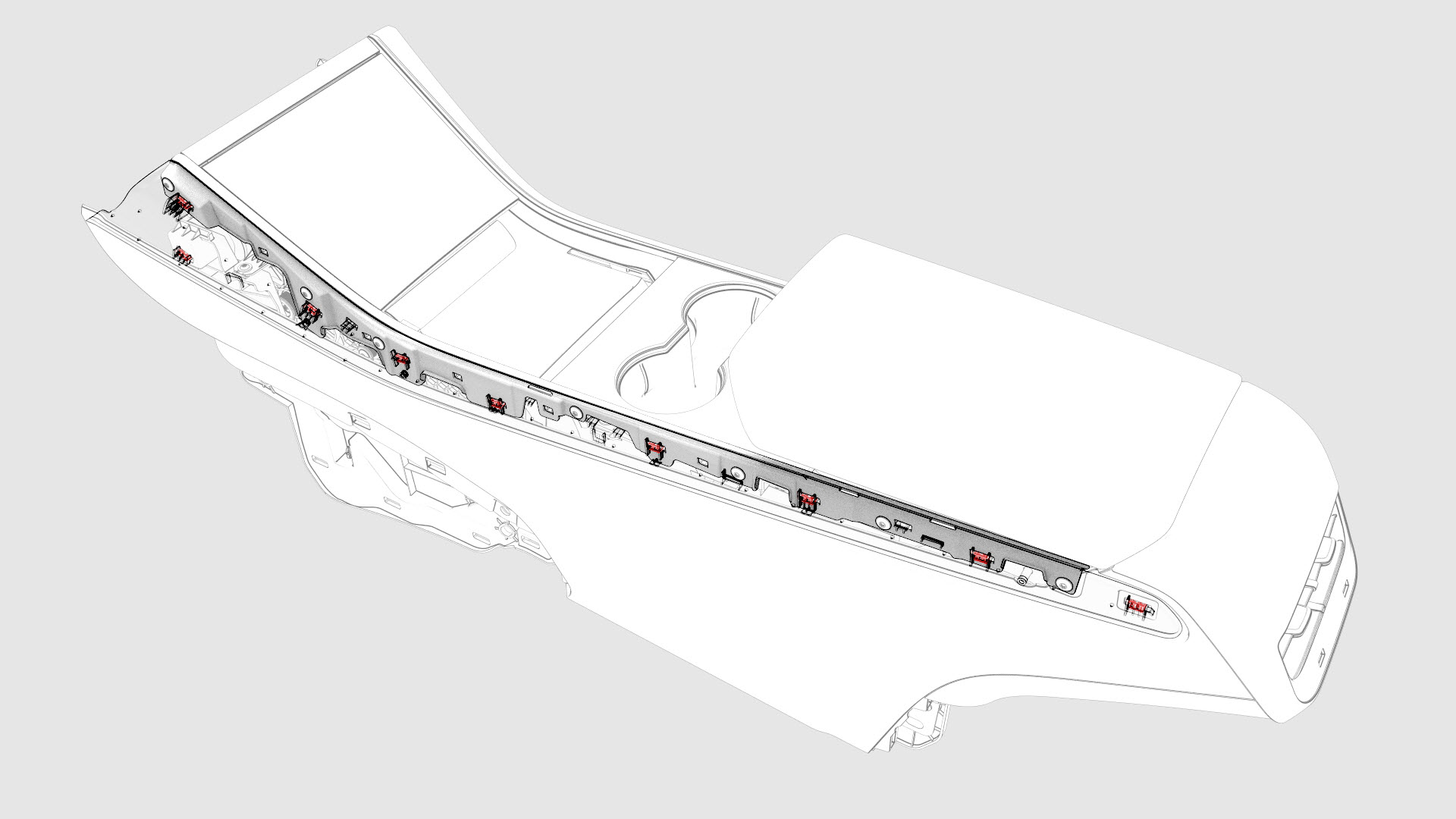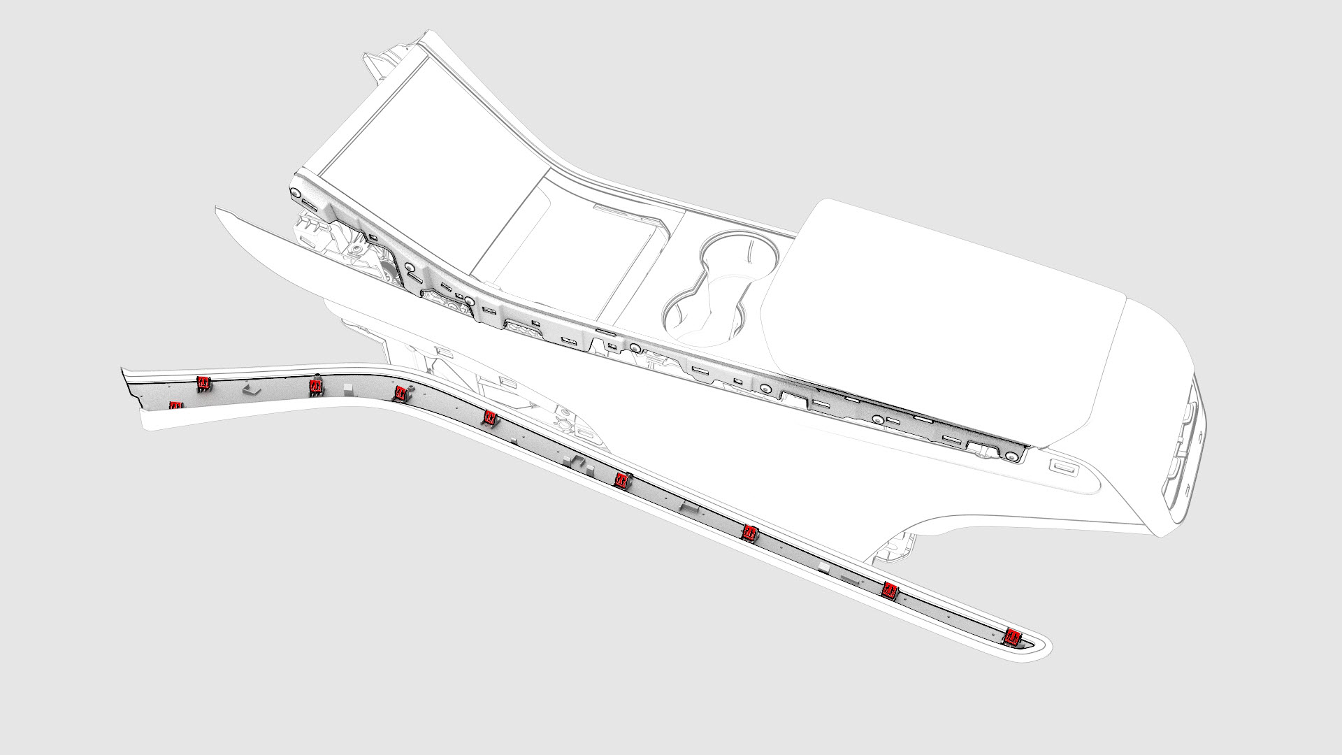 ![]() | 3 | Release the clips (x9) that attach the LH center console decor trim to the center console, and then remove the decor trim.![]() | |