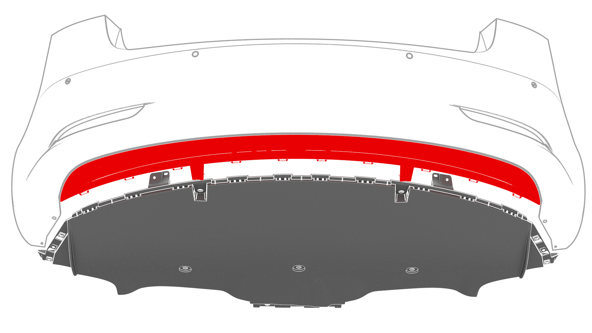 ![]() | 5 | Starting from either side, release the clips (x10) that attach the diffuser to the rear fascia, and then remove the diffuser from the rear fascia. | |