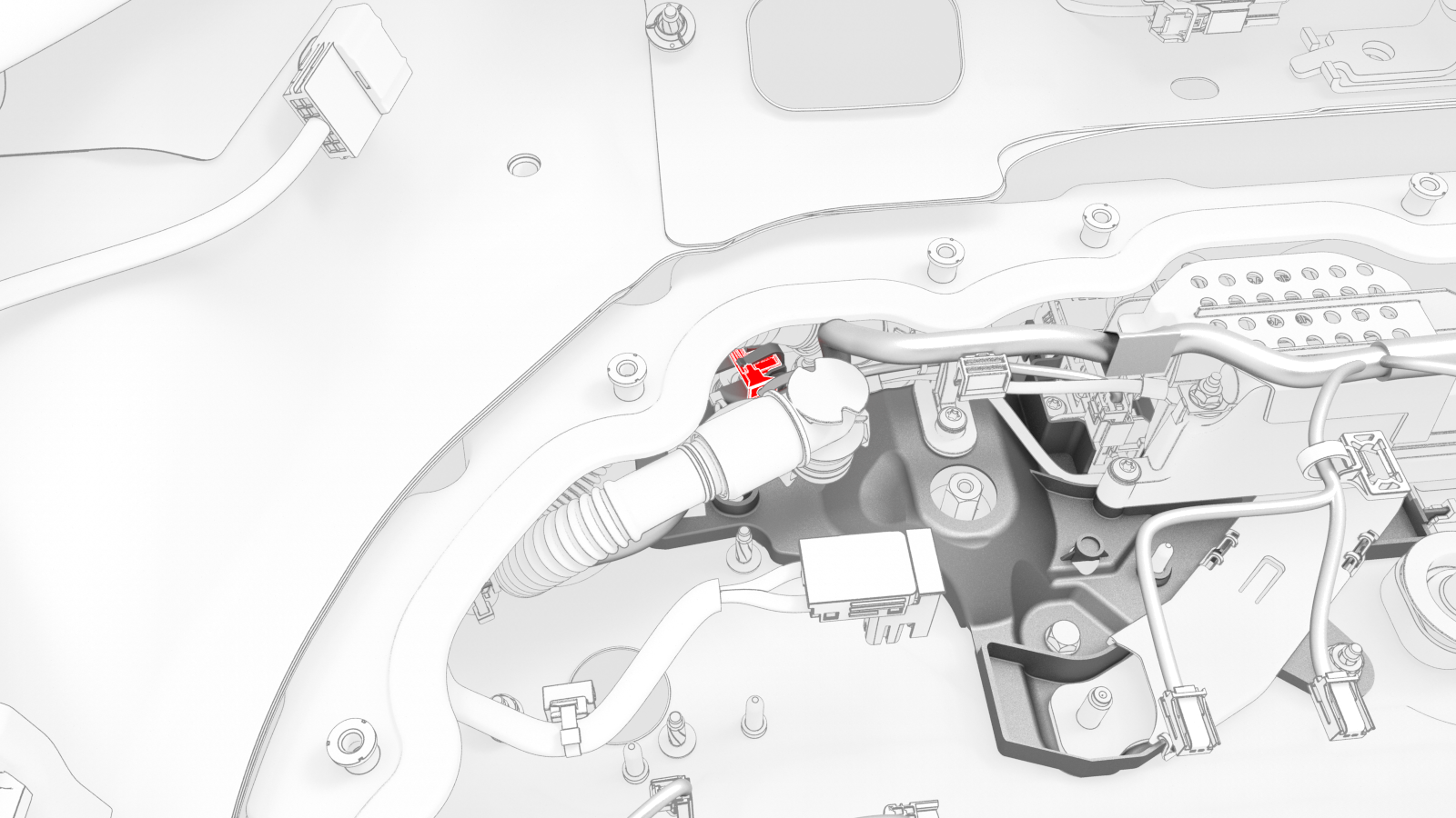 ![]() | 7 | Connect the HV battery penthouse harness to the shunt connector, the rear drive unit high voltage interlock loop connector, the A/C compressor and PTC heater high voltage interlock loop connector, and then fasten the harness under the respective tabs. | |