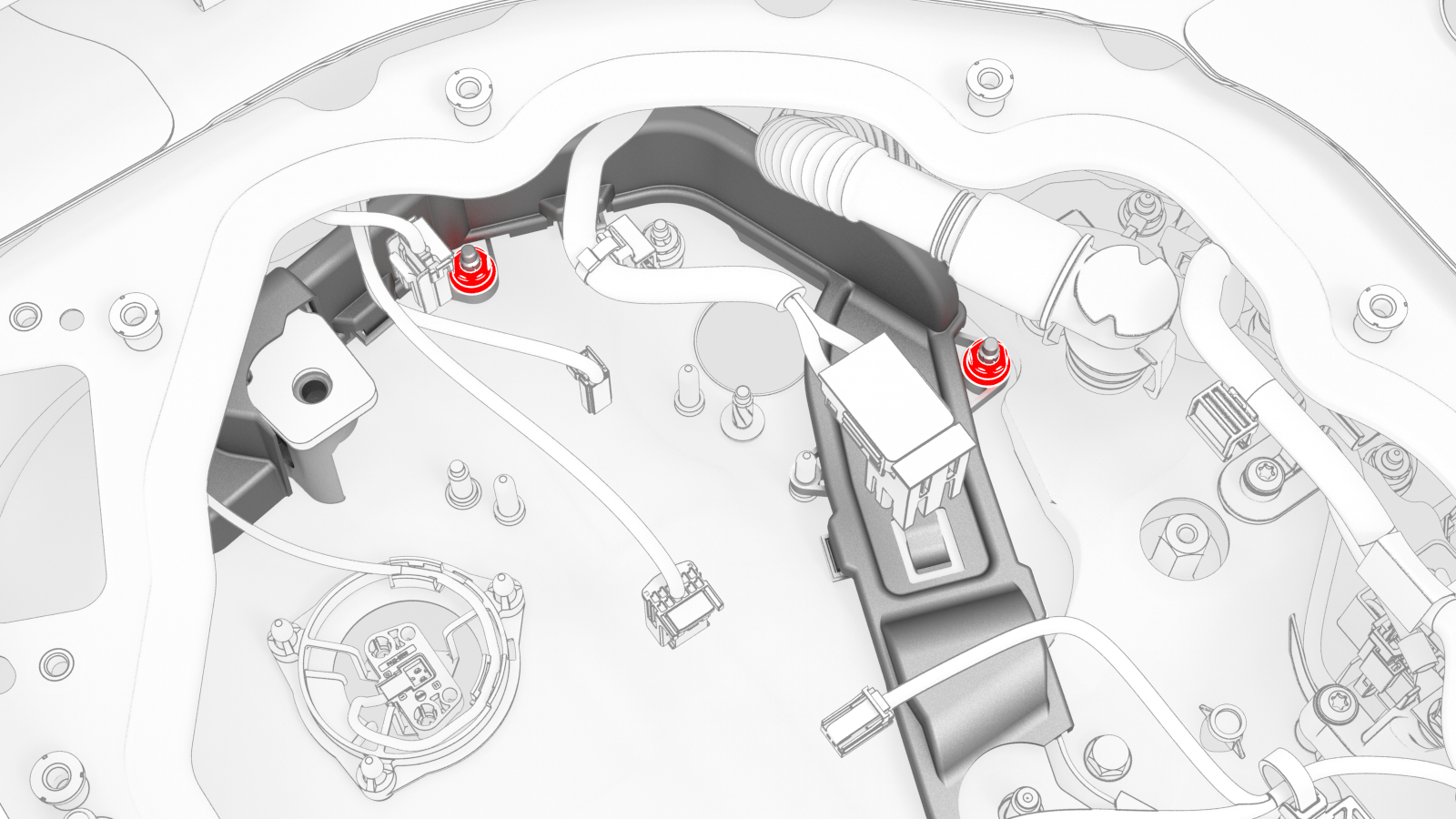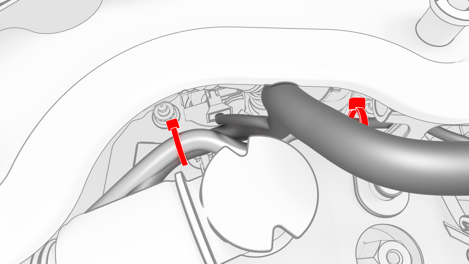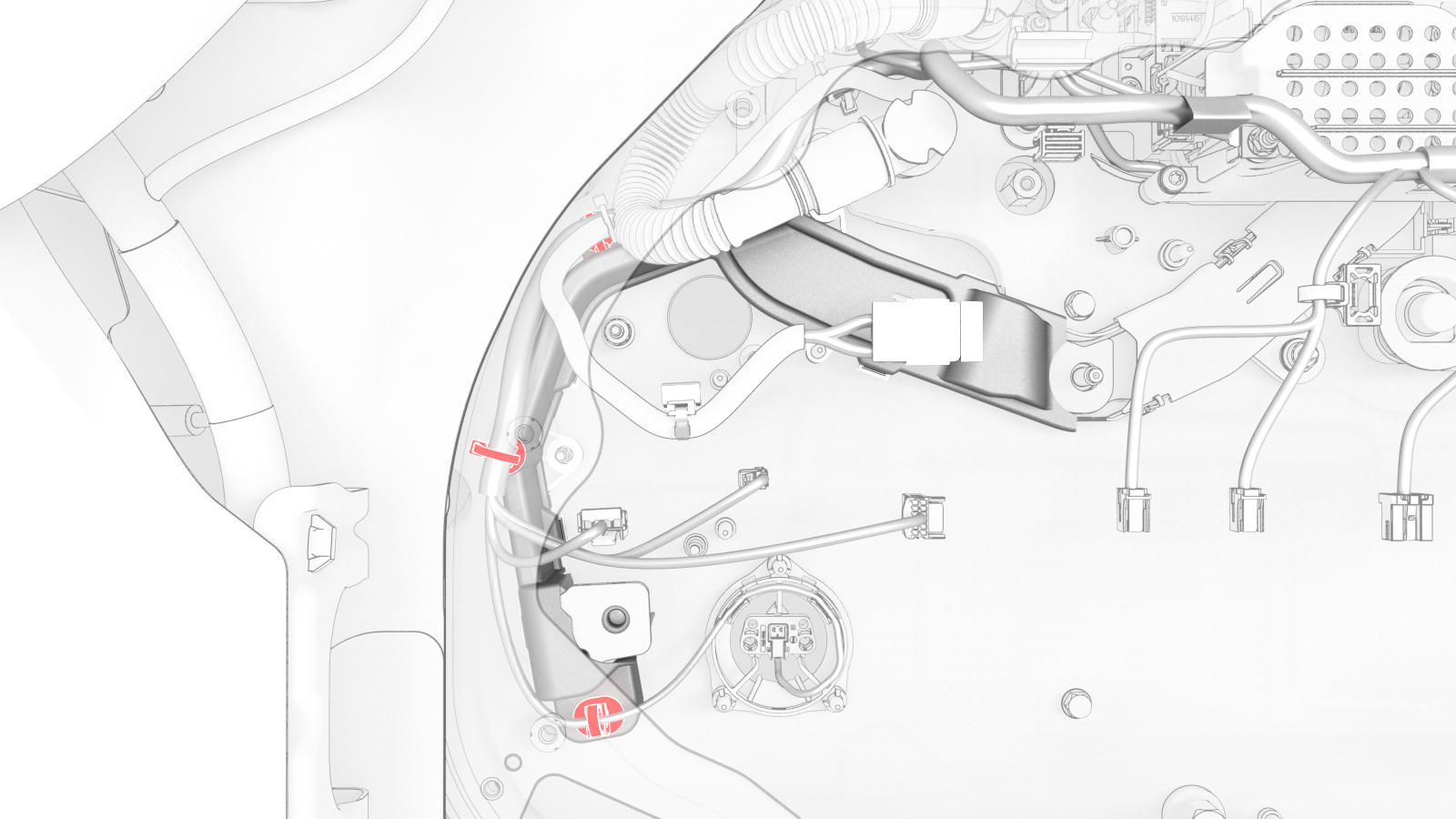 ![]() | 22 | Remove the clip that confines the RH Hall-effect sensor to the RH flood port cover above the RH flood port. | |