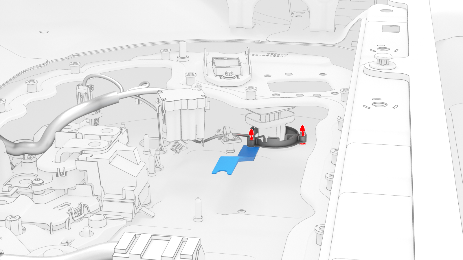 ![]() | 13 | Release the tab that holds the LH Hall-effect sensor to the LH flood port cover, and then separate the sensor from under the tab. | |