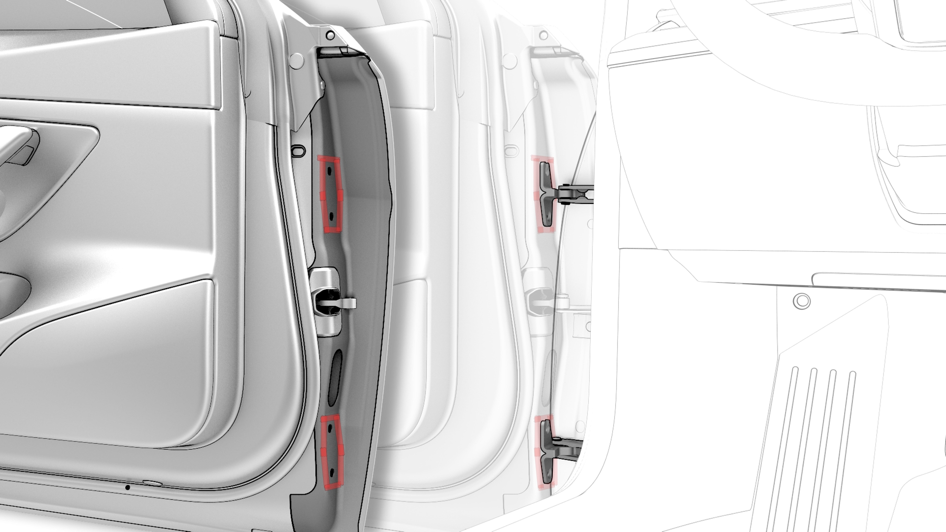 ![]() | 11 | Use tape to mark the mounting locations of the door hinges on the LH front door. | |