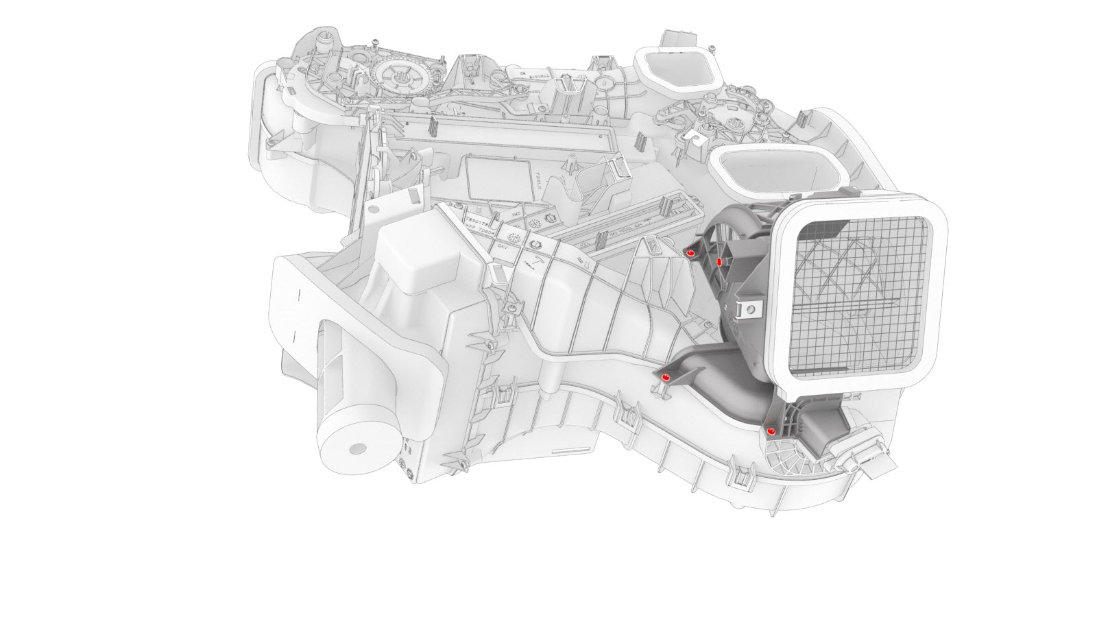 | 2 | Put the HVAC assembly on a working surface. Make sure that the HVAC assembly is on its side with the HVAC inlet facing up. | ||