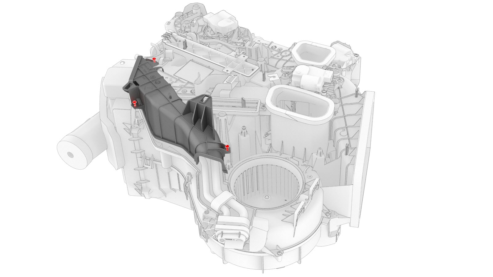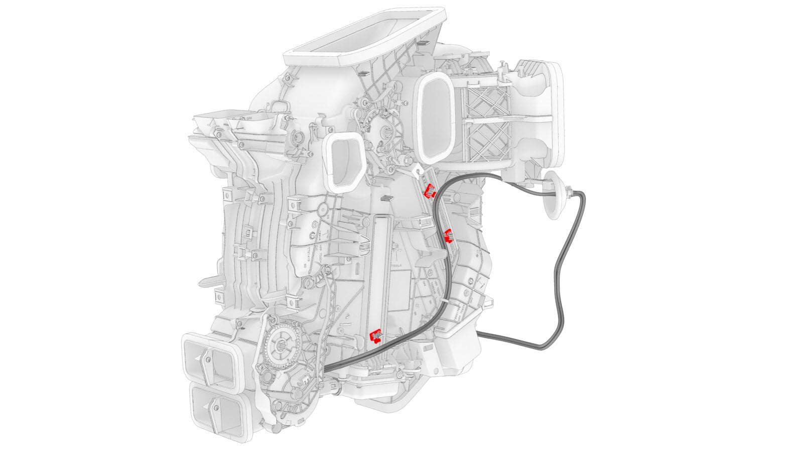 | 3 | Install the HVAC inlet onto the HVAC assembly. Note: Insert the 2 tabs into the slots on the HVAC assembly at an angle, and then set flat onto the HVAC assembly.