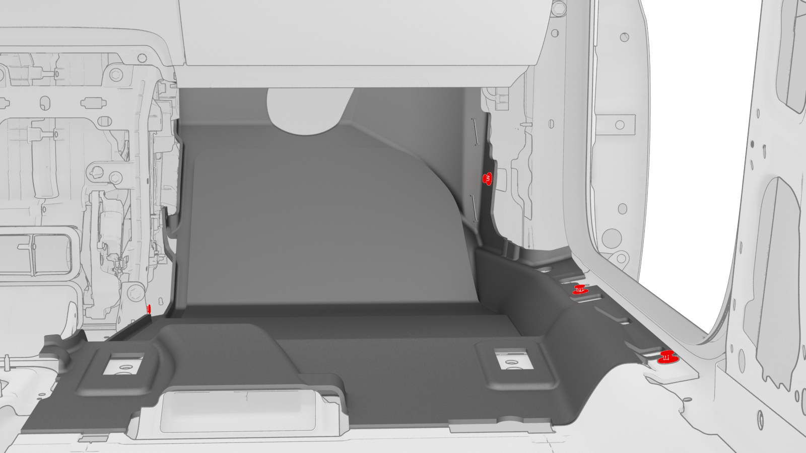 ![]() | 3 | Release the clips that attach the RH front carpet to the vehicle, and then remove the RH front carpet from the vehicle. |