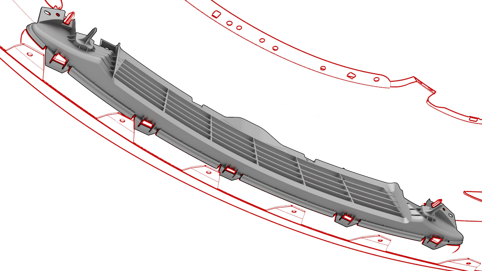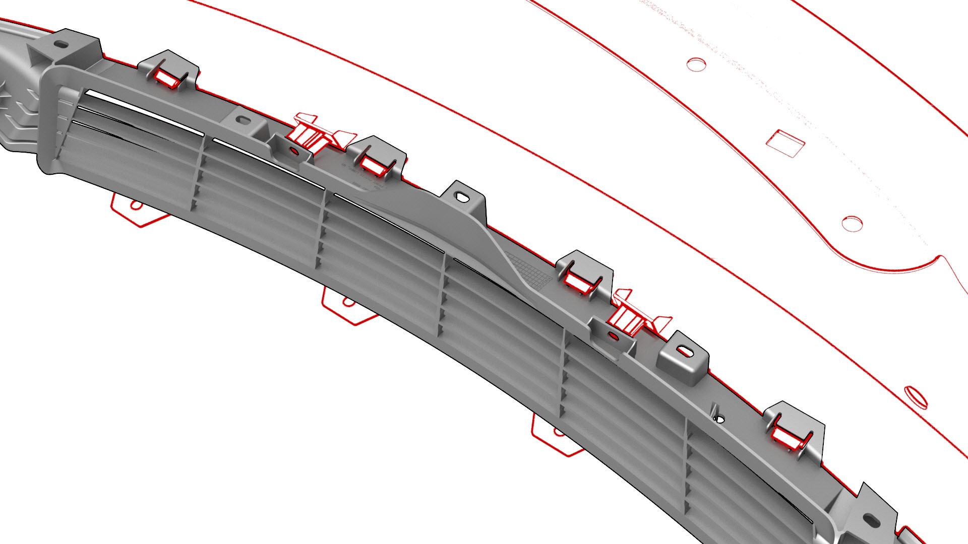 ![]() | 14 | Release the clips (x9) that attach the front fascia grille to the front fascia, and then remove grille from the fascia. |