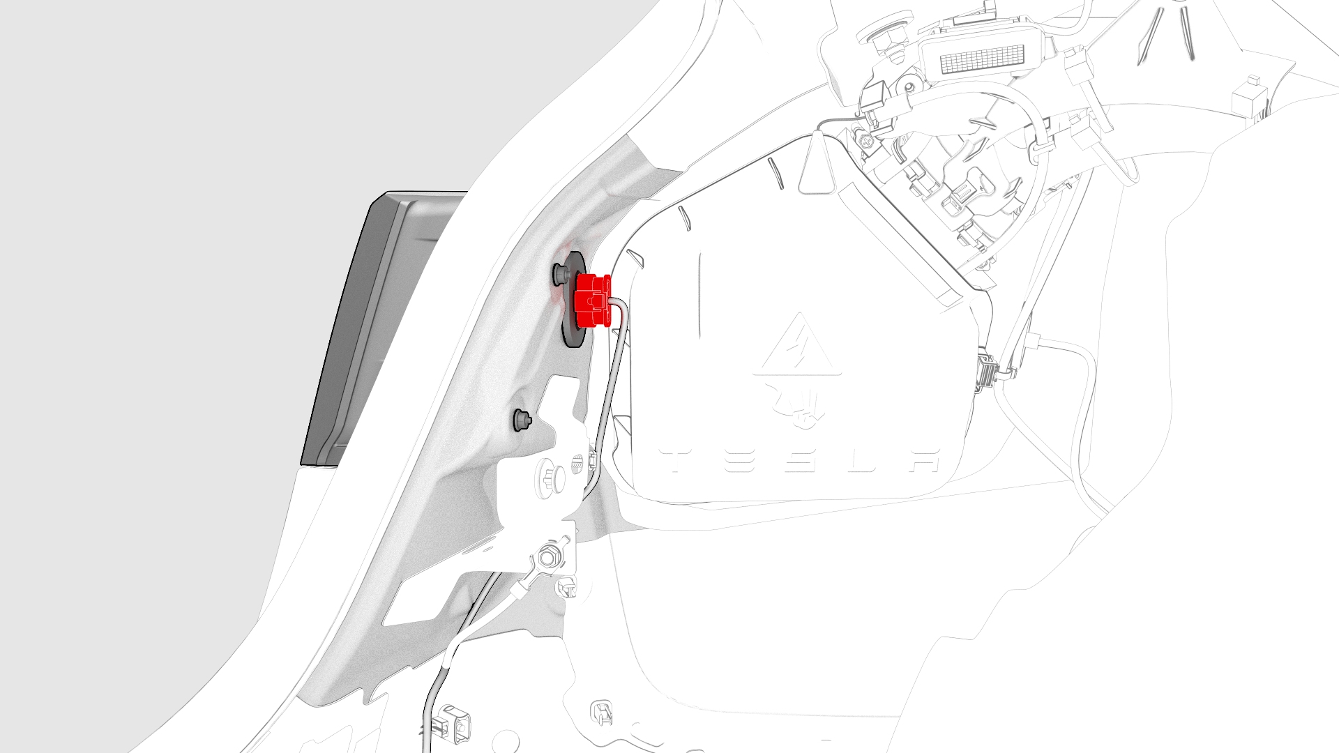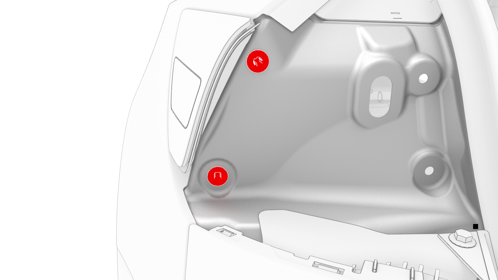 ![]() | 2 | Open the trunk, and then use the bump stop removal tool to remove the LH trunk stop. Caution: Do not use other tools to pry at the trunk stop as this could damage the taillight or trunk stop.