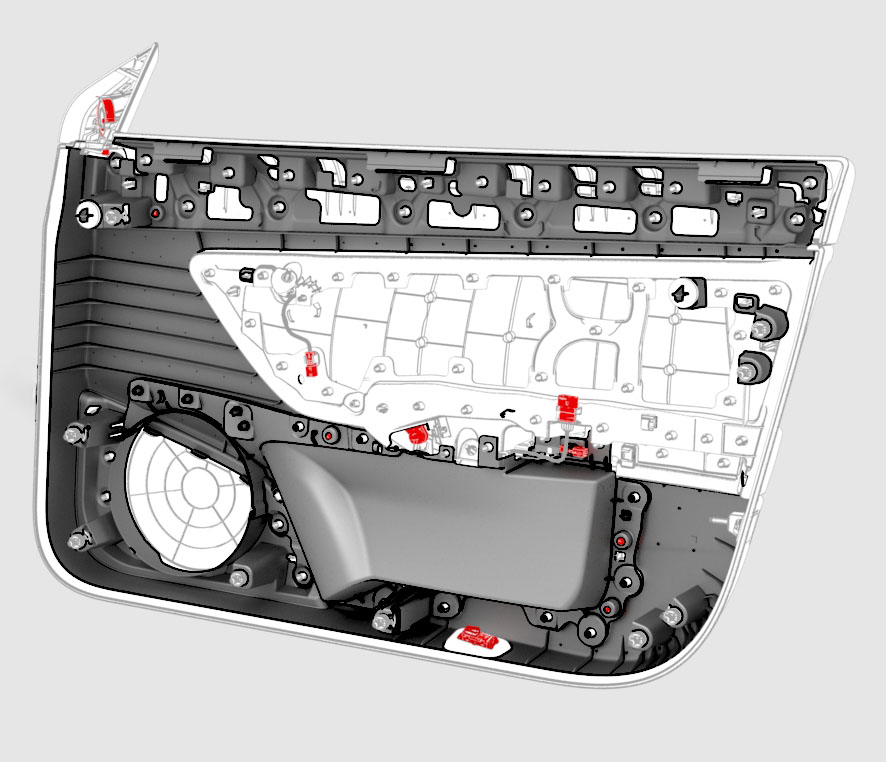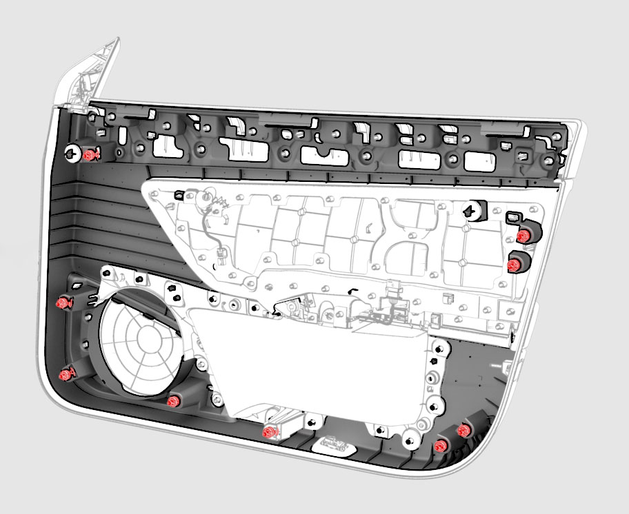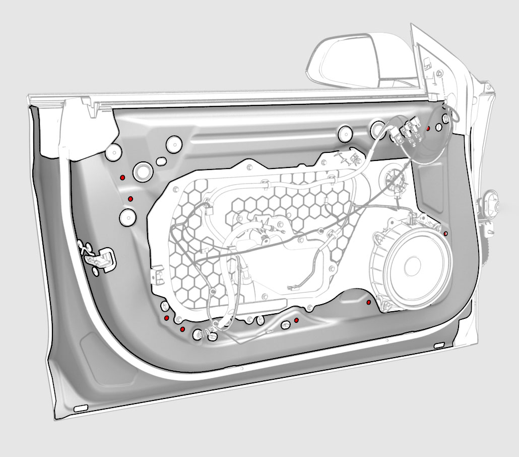 | 7 | Continue to pull and release all of the clips around the edge of the trim panel, working from the bottom up. Caution: Do not remove the trim panel from the door at this time.