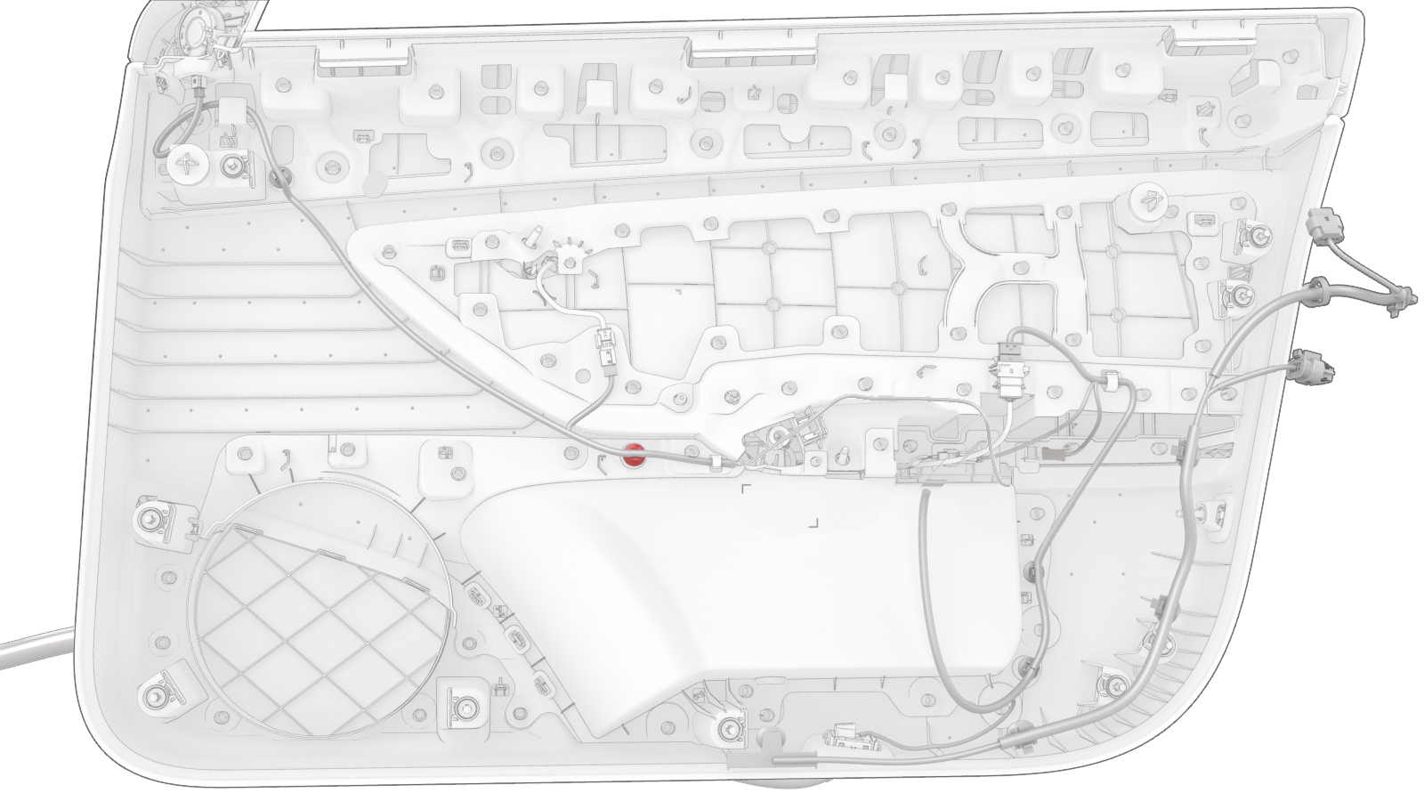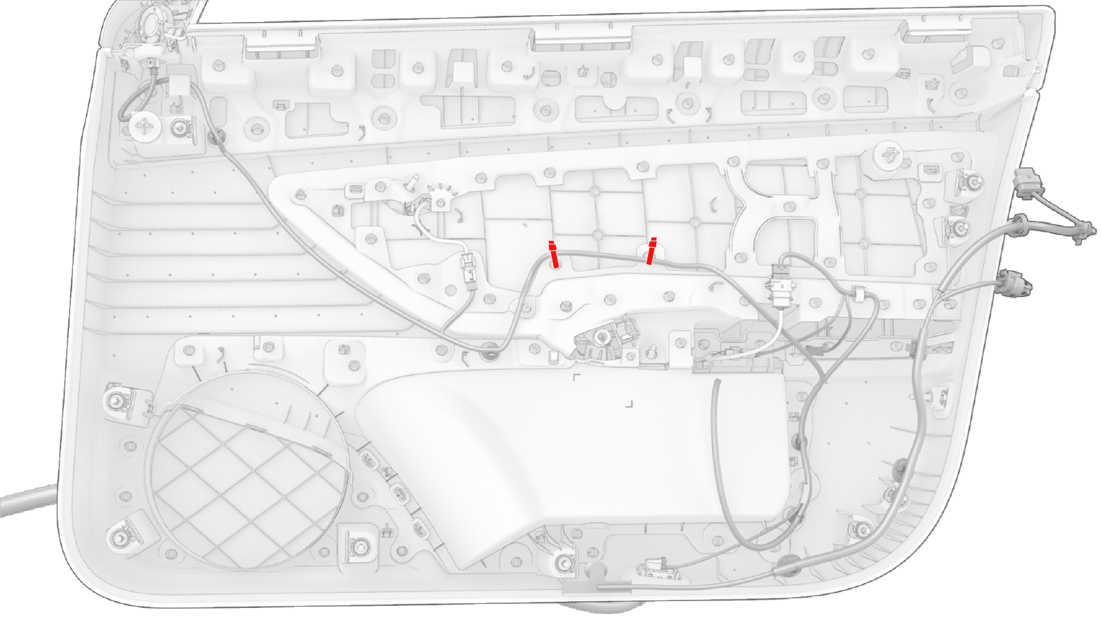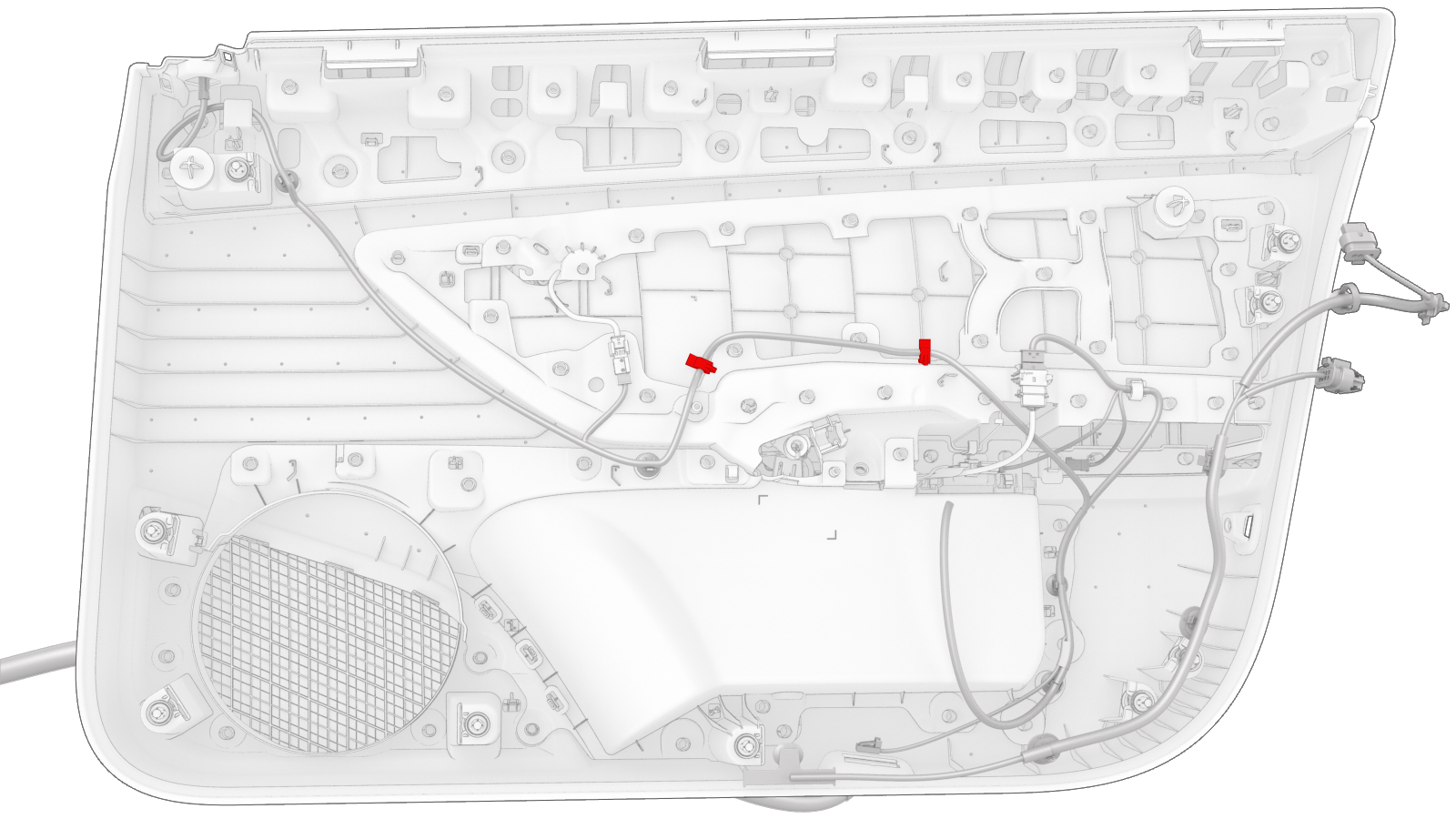 ![]() | 10 | Disconnect the electrical harness from the connectors, and then release the clips that attach the electrical harness to the trim panel. Caution: Do not remove the trim panel from the door at this time.