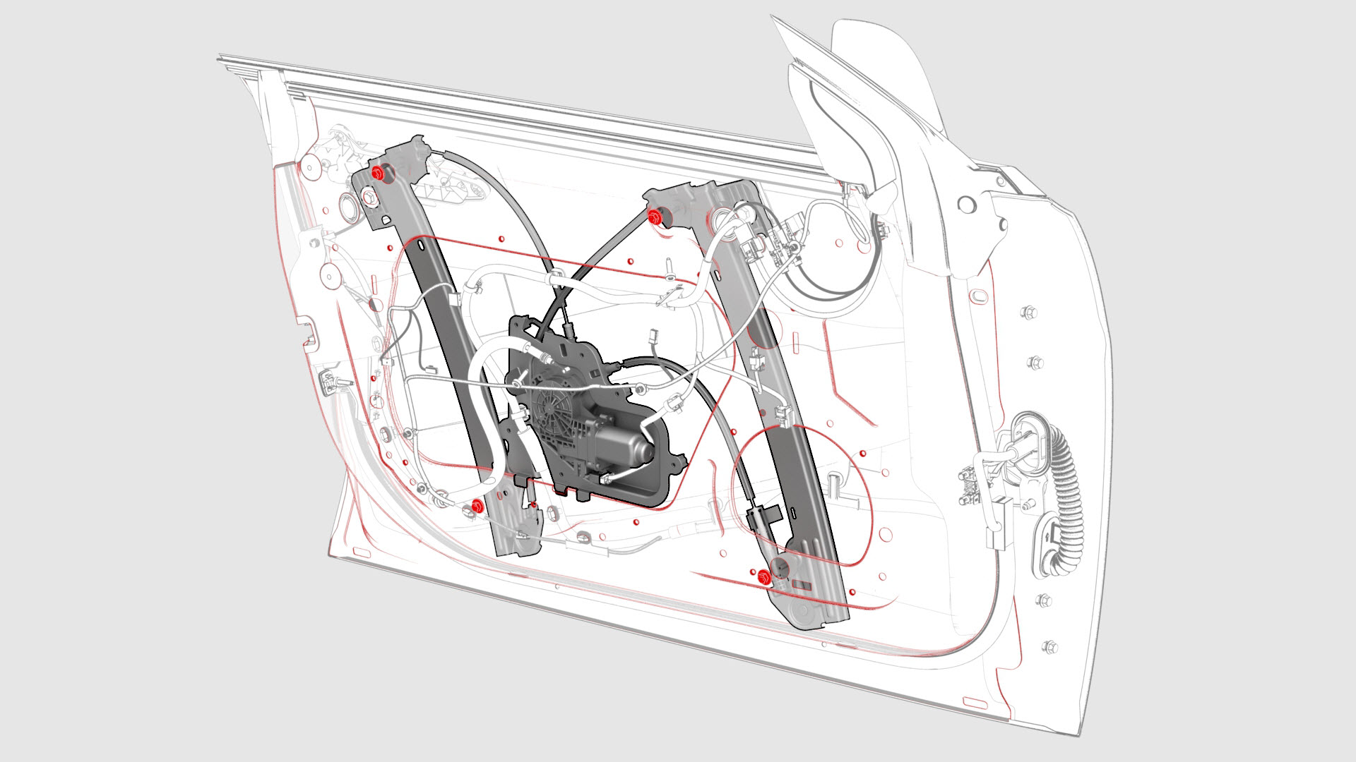 | 1 | Position the window motor/regulator assembly into the LH front door for installation. | ||