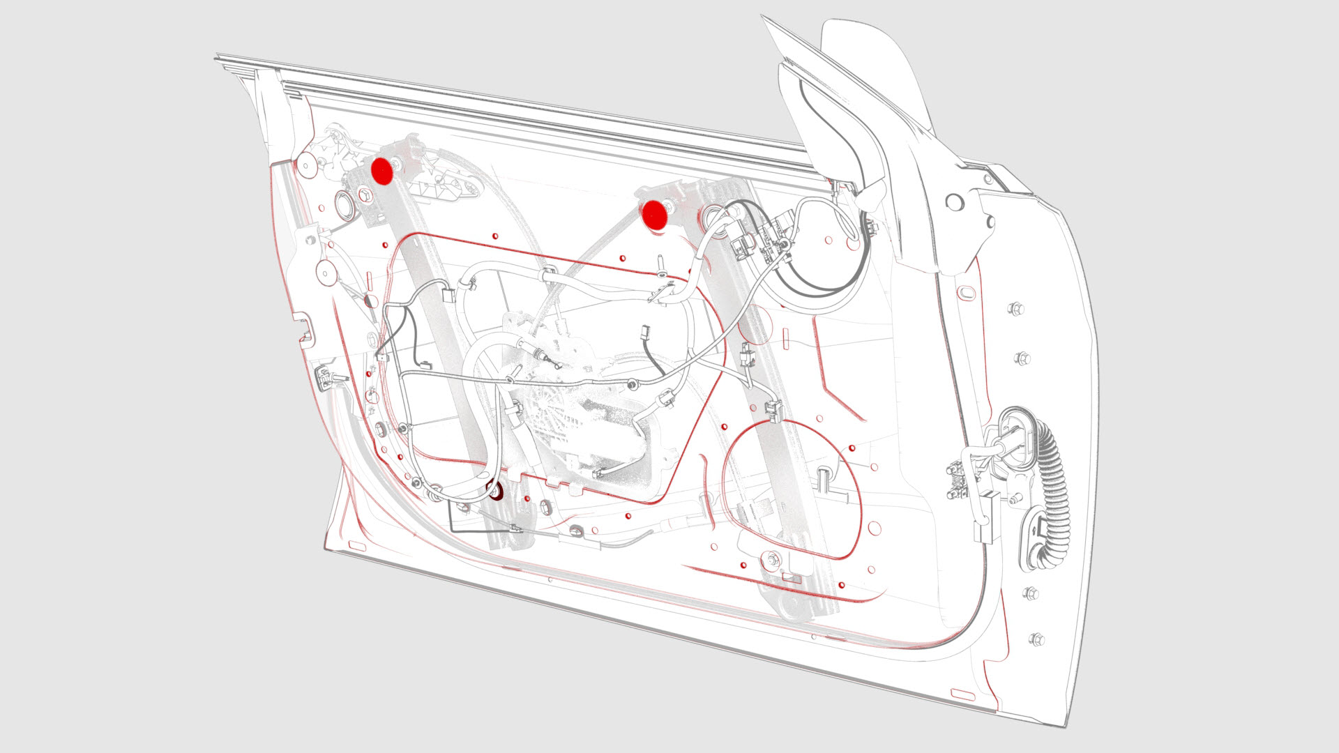 ![]() | 3 | Install the plugs that allow for access to the window motor/regulator assembly. | |