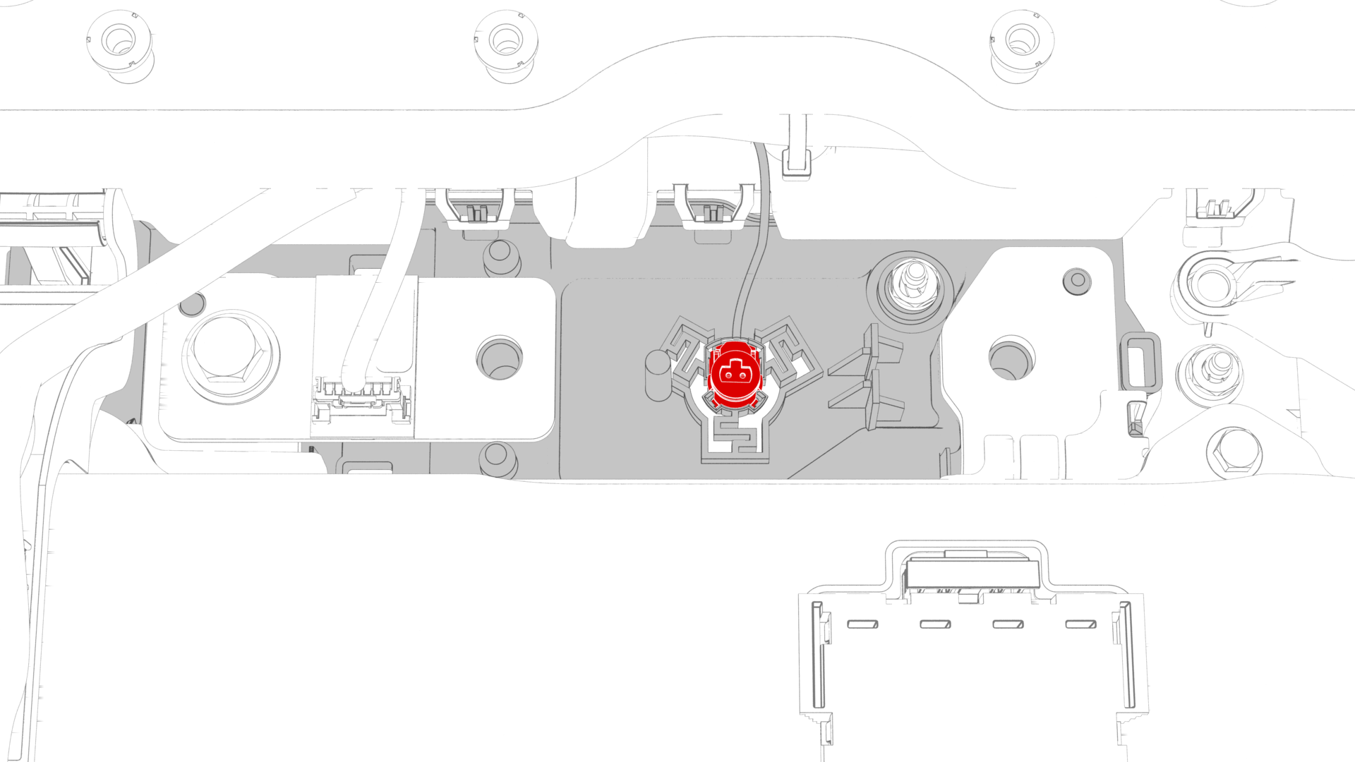 ![]() | 3 | Position the pyrotechnic battery disconnect into the HV battery for installation. Make sure to align the pins of the connector with the new pyrotechnic battery disconnect. | |