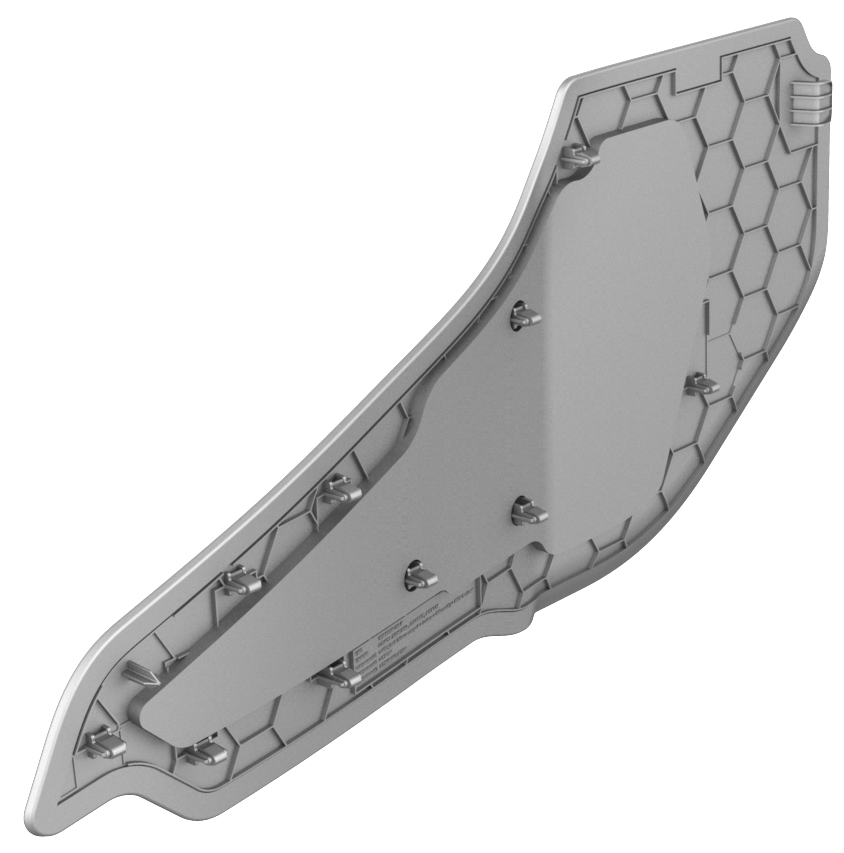 ![]() | 3 | Release the clips and tabs that attach the center console side panel carpet to the center console, and then remove the side panel from the vehicle. Note: Release the rearmost clips first and work toward the front of the vehicle. Transfer any clips that remain in the center console and the cross car beam to the center console side panel carpet.