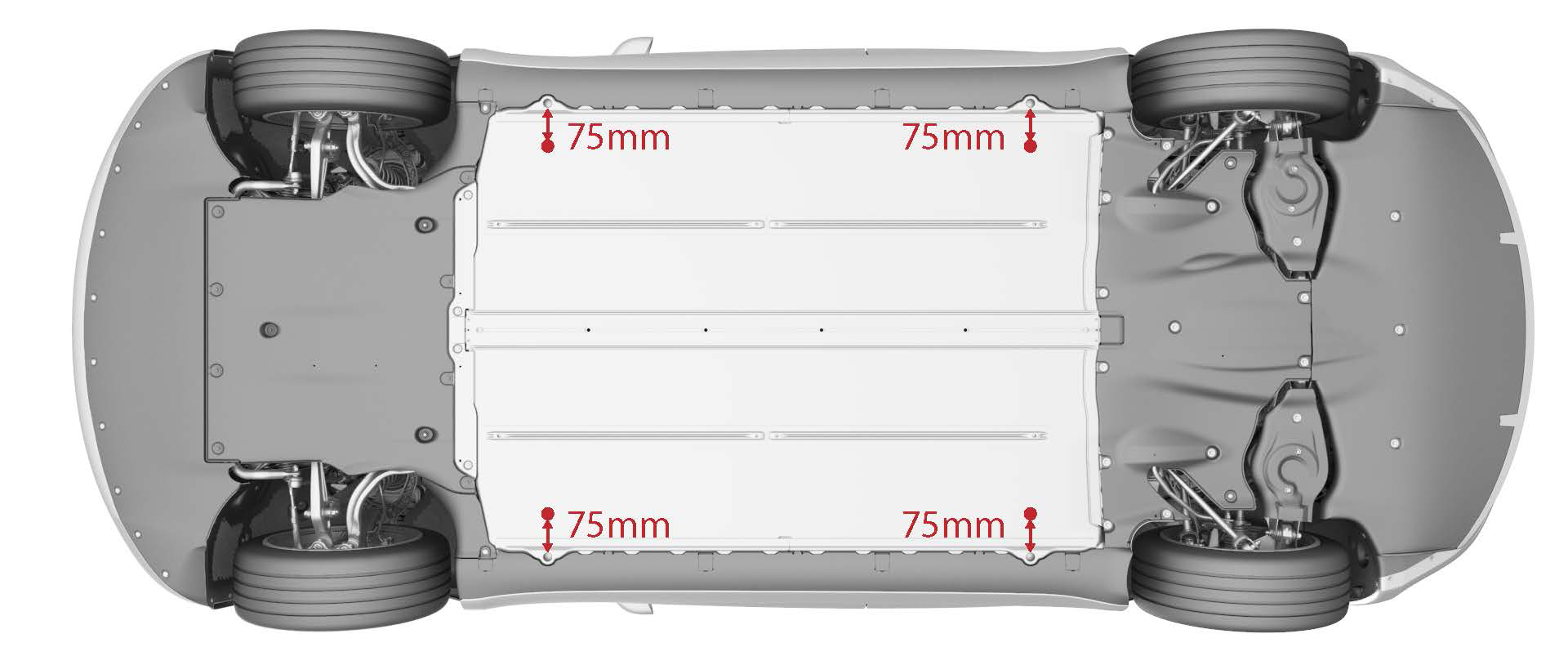 | Performance Coil Ride Height (unladen) Note: When measuring the coil ride height, measure 75 mm inward from the ski hole in each corner of the Battery. See the image below.
