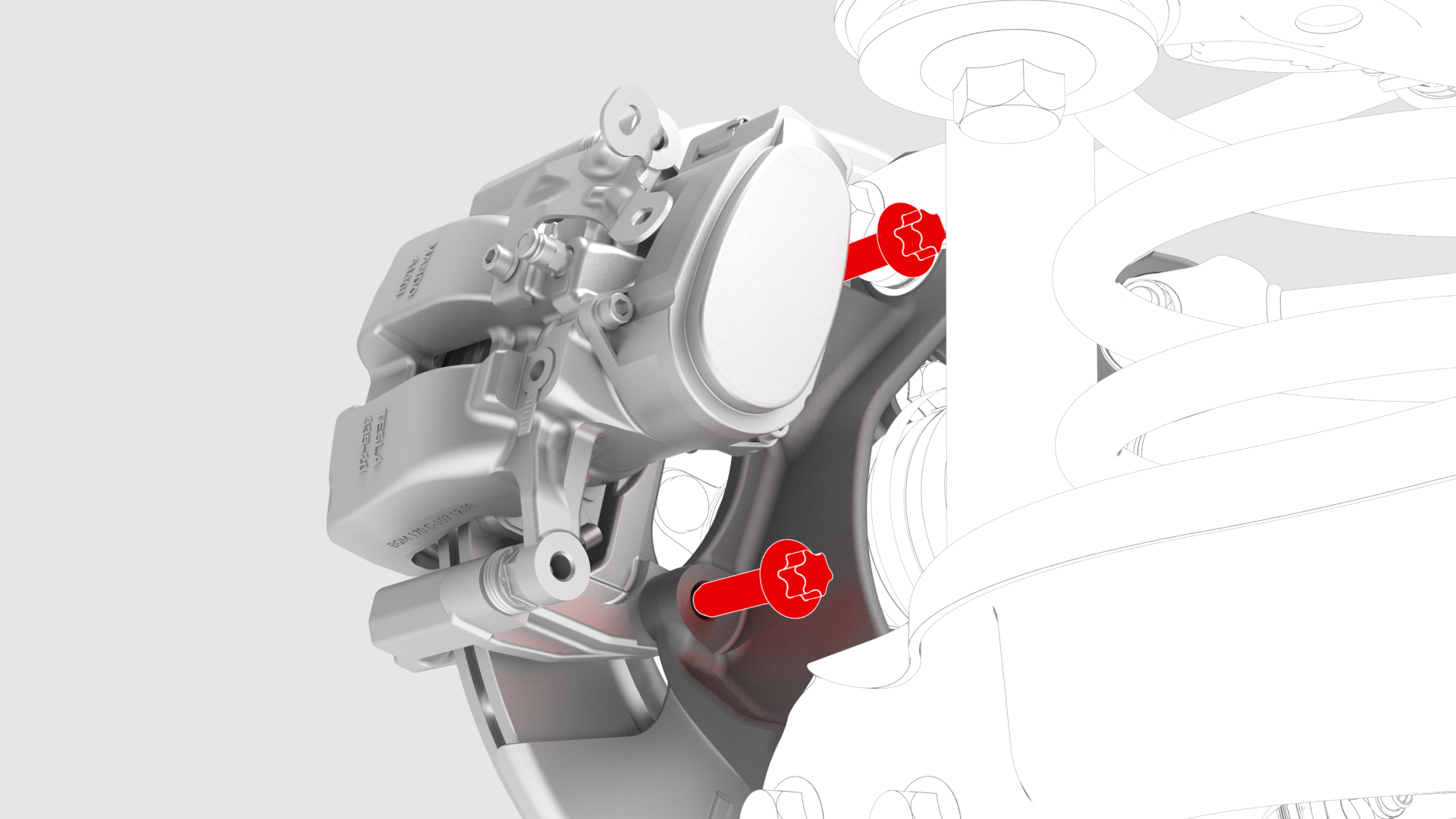 ![]() | 9 | Remove and discard the bolts that attach the LH rear caliper bracket to the knuckle. | |
