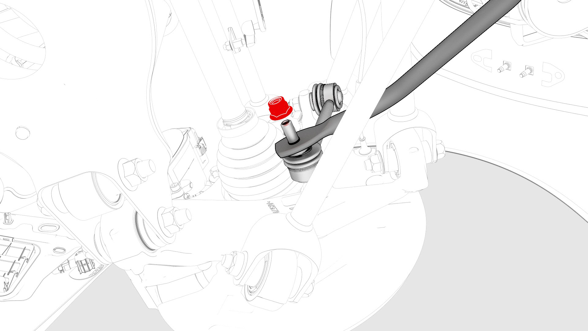 ![]() | 24 | Remove and discard the nut that attaches the rear stabilizer bar link to the rear stabilizer bar. Note: Break the nut loose, and then counter-hold the ball joint with a 5 mm hex wrench.