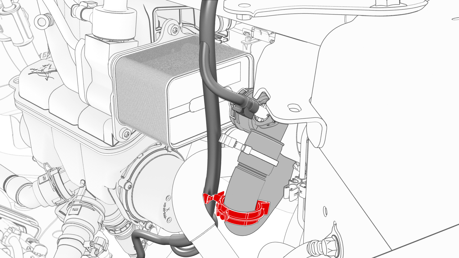 ![]() | 18 | Release the clip that attaches the thermal beam electrical harness to the chiller and EXV assembly hose, and then remove the electrical harness from the hose. | |