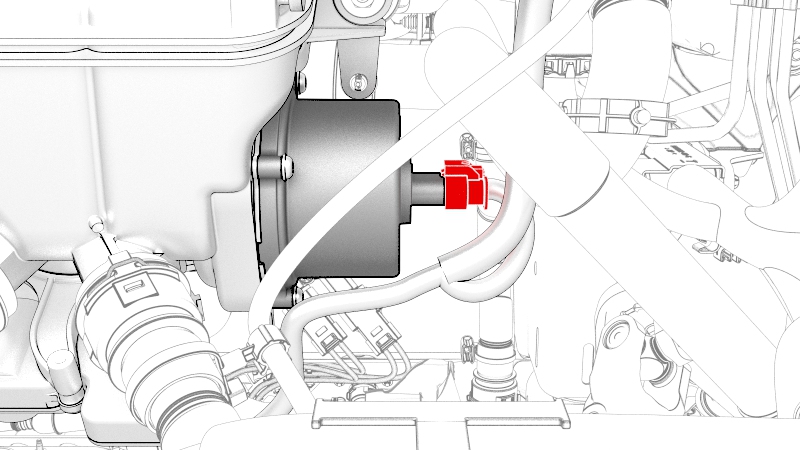 ![]() | 3 | Connect the thermal beam electrical harness to the powertrain pump to sill hose coolant temperature sensor connector. | |