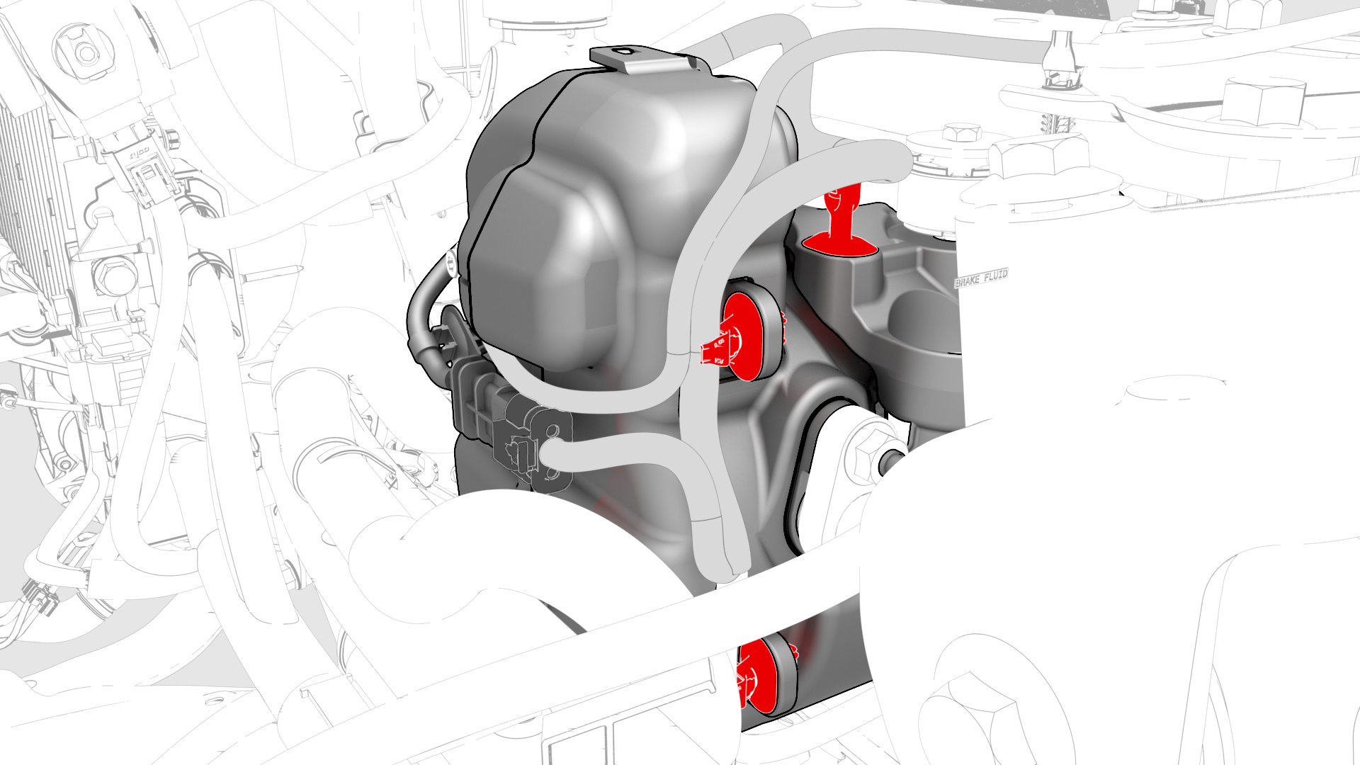 ![]() | 1 | Fasten the clips that attach the thermal beam electrical harness to the shock tower brace. | |