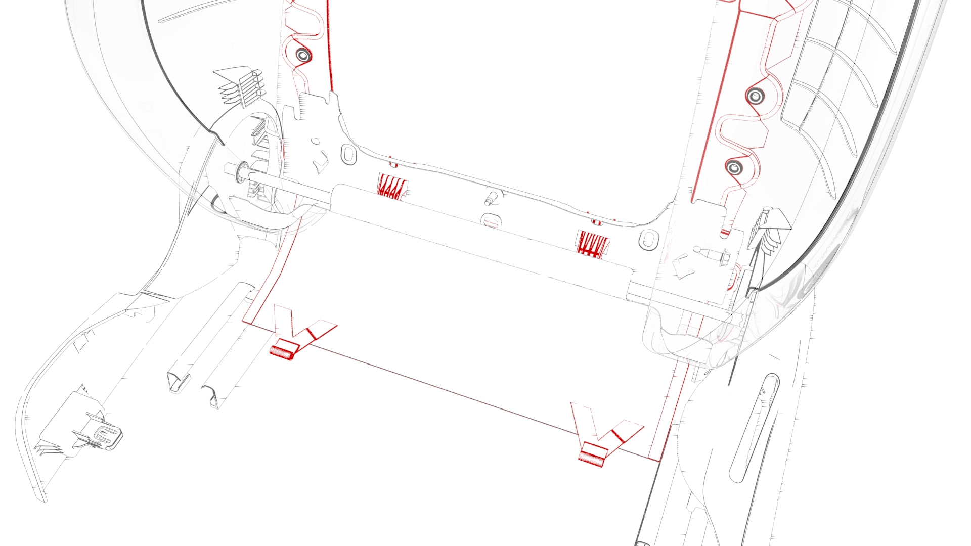 ![]() | 2 | Release the clips that attach the seat back shell to the driver seat, lift up on the shell to unhook it from the seat back frame, and lay the shell back. | |