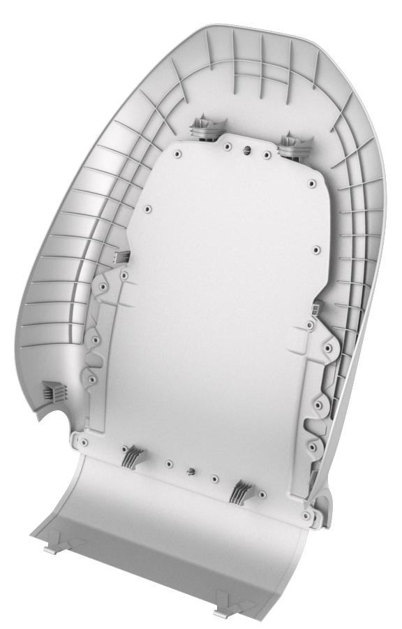 ![]() | 3 | Release the clips that attach the shell apron to the underside of the seat, and then remove the shell from the seat.![]() |