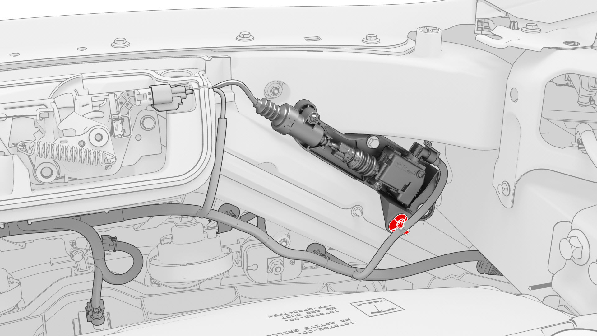 ![]() | 3 | Install the clip that attaches the secondary hood latch actuator to the front end carrier. | |