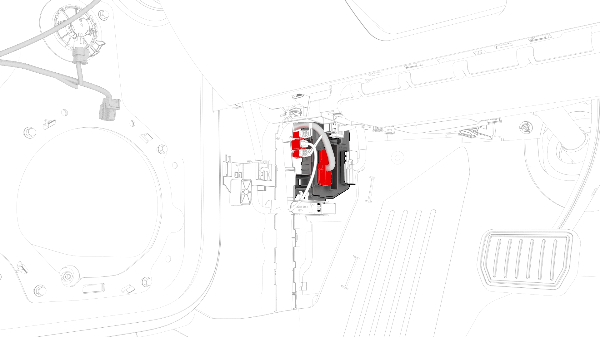 ![]() | 12 | Release the wiring harness clip from the LH body controller module. | |