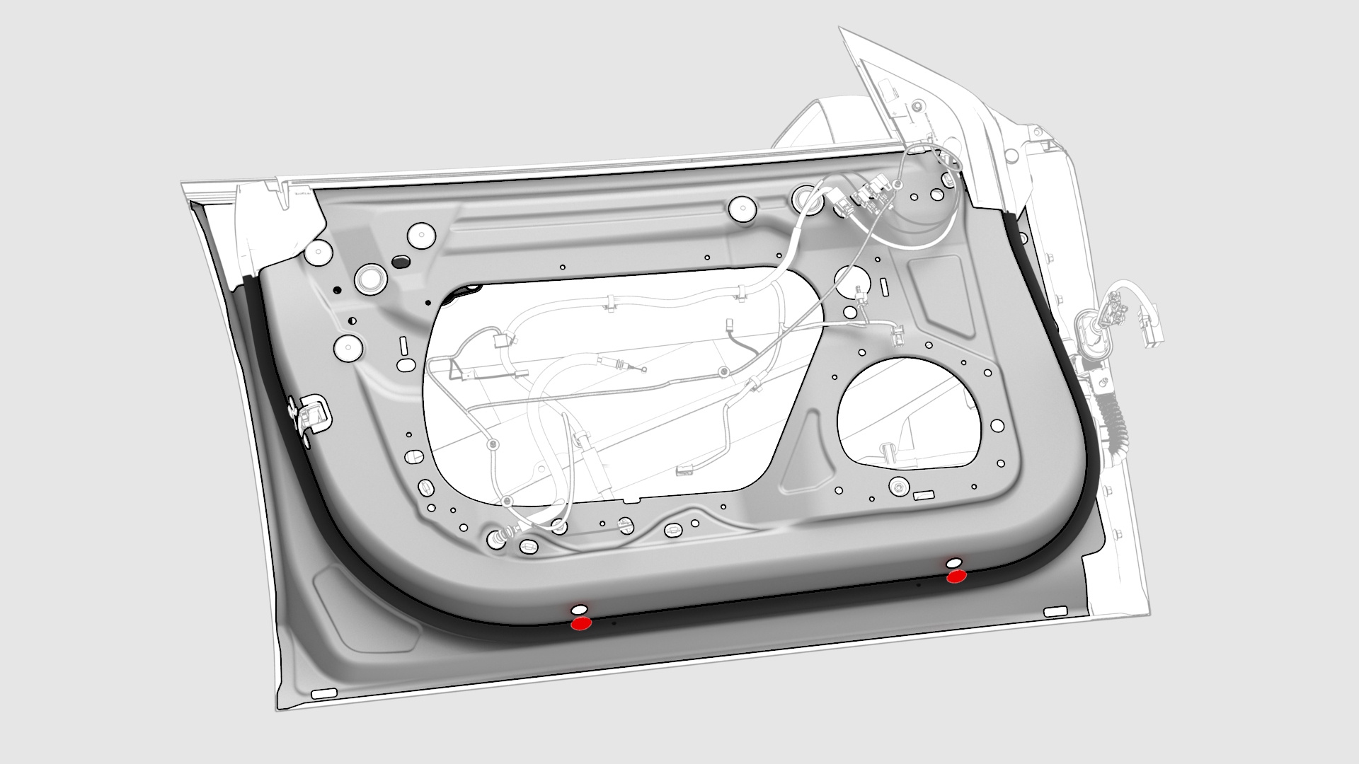 | 15 | Push the wiring harness through the door bulkhead, and then remove the harness from the door. | ||