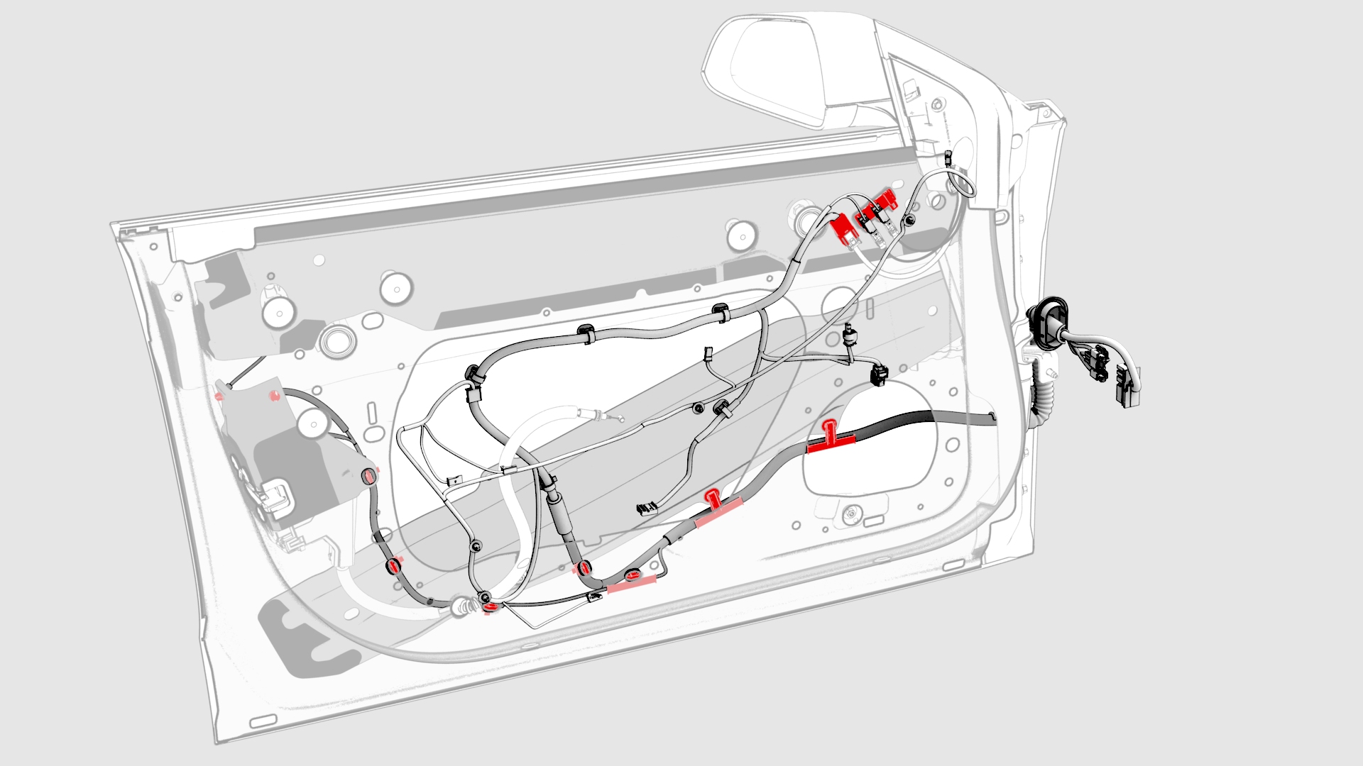 ![]() | 14 | Release all door harness clips. | |